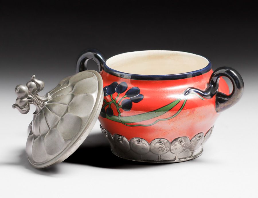 - Villeroy & Boch – Orivit Pewter Art Nouveau Overlay Two-Handled Sugar c1900s