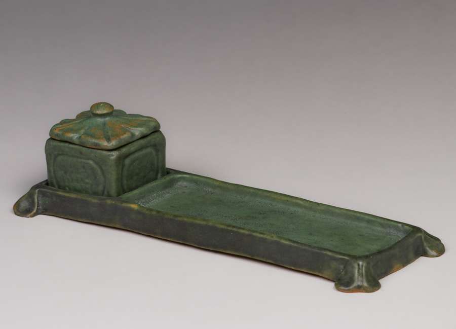 - Volkmar Pottery Pen Tray Inkwell c1910