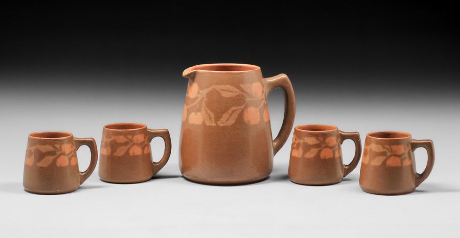 - Walrath Pottery Five Piece Cider Set c1910