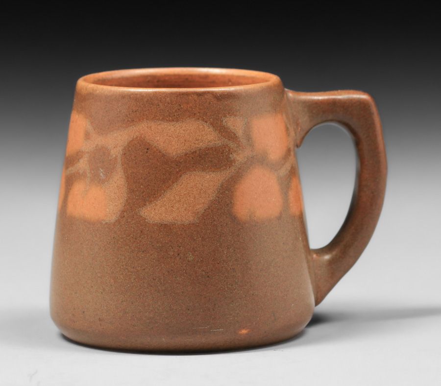 Walrath Pottery Five Piece Cider Set c1910. Signed. A couple of small fleck stores base of mugs, otherwise perfect condition. Pitcher 7.5"h x 7.5"w x 6.25"d. Mugs 3"h x 4.5"w SOLD