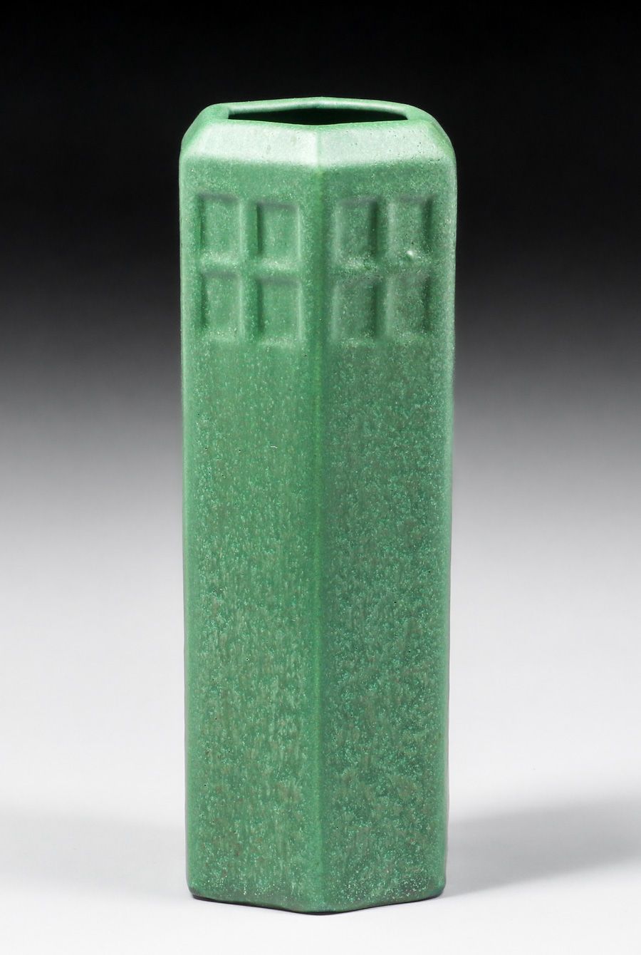 - Weller Bedford Matte Green Hexagonal Vase c1910