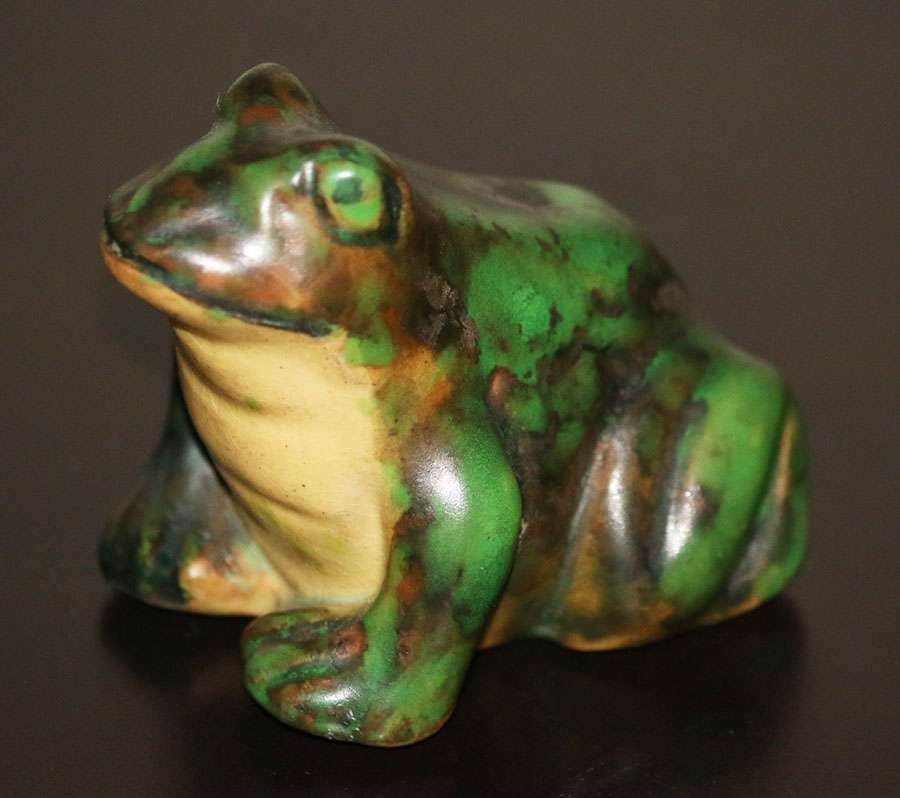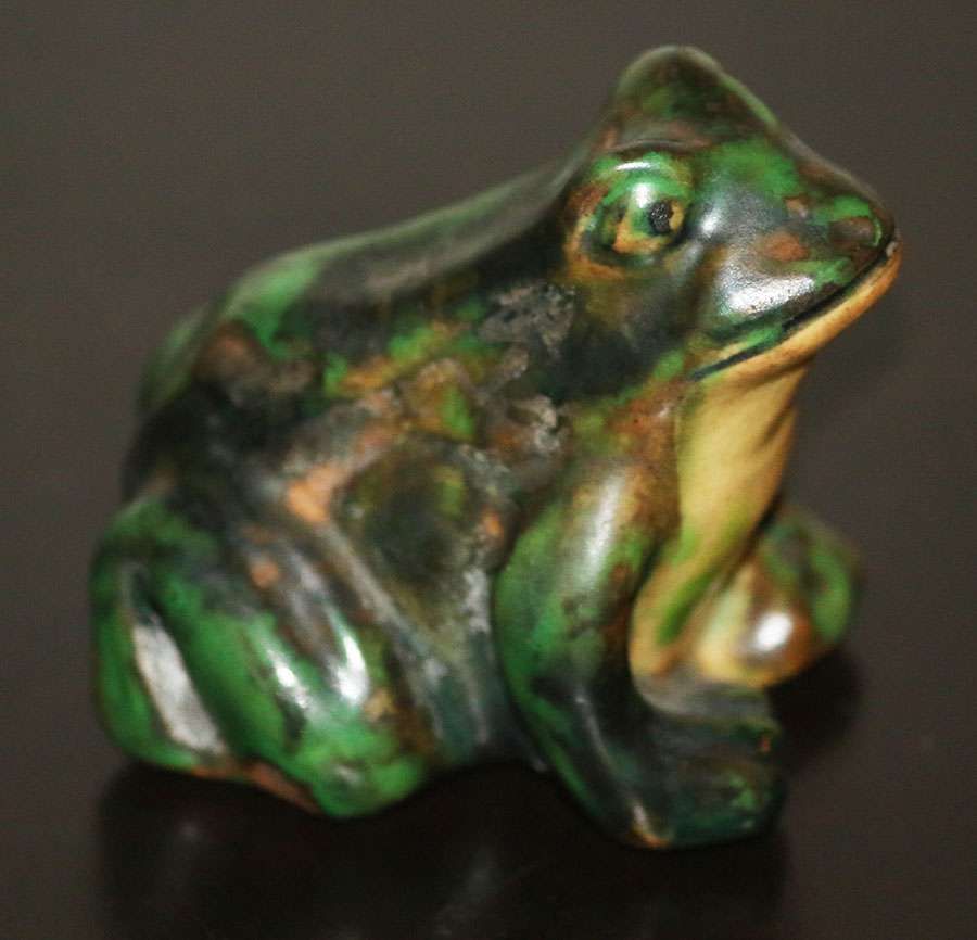 Weller Coppertone Frogs : Largest, tiny edge flake to base, unsigned 5.75"h x 6.75"d x 5.5"w SOLD ; medium, prefect condition, signed, 3.75"h x 4"d x 3"w SOLD ; smallest, perfect condition, unsigned, 2.25"h x 2.5"d x 1.75"w SOLD