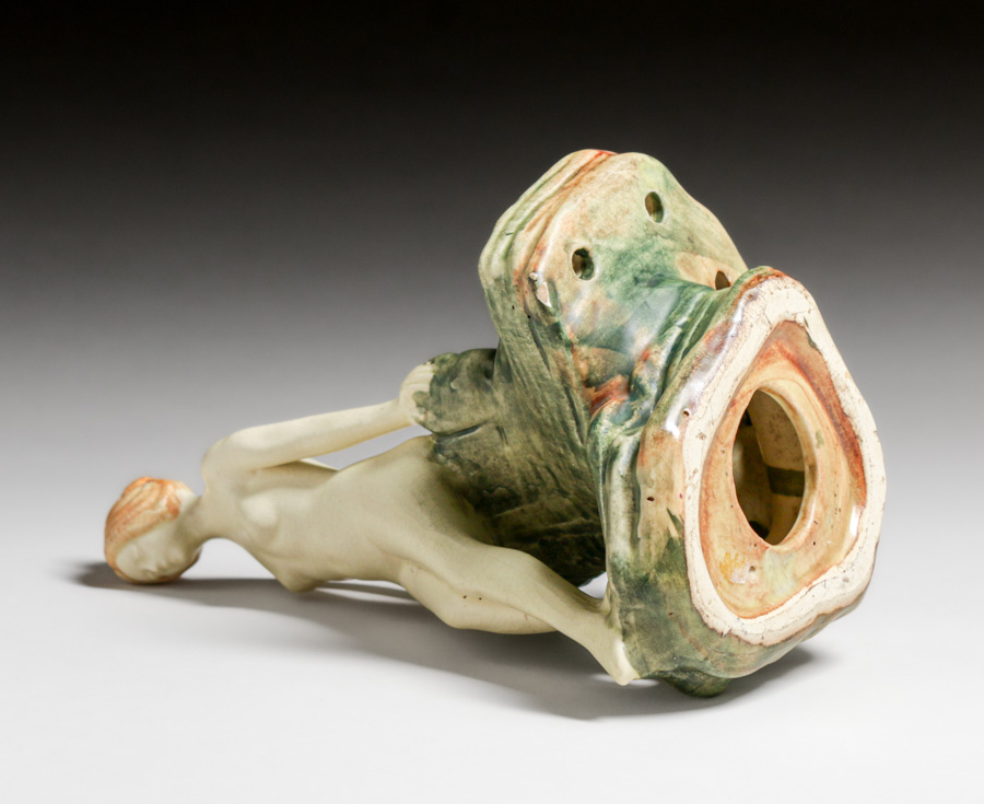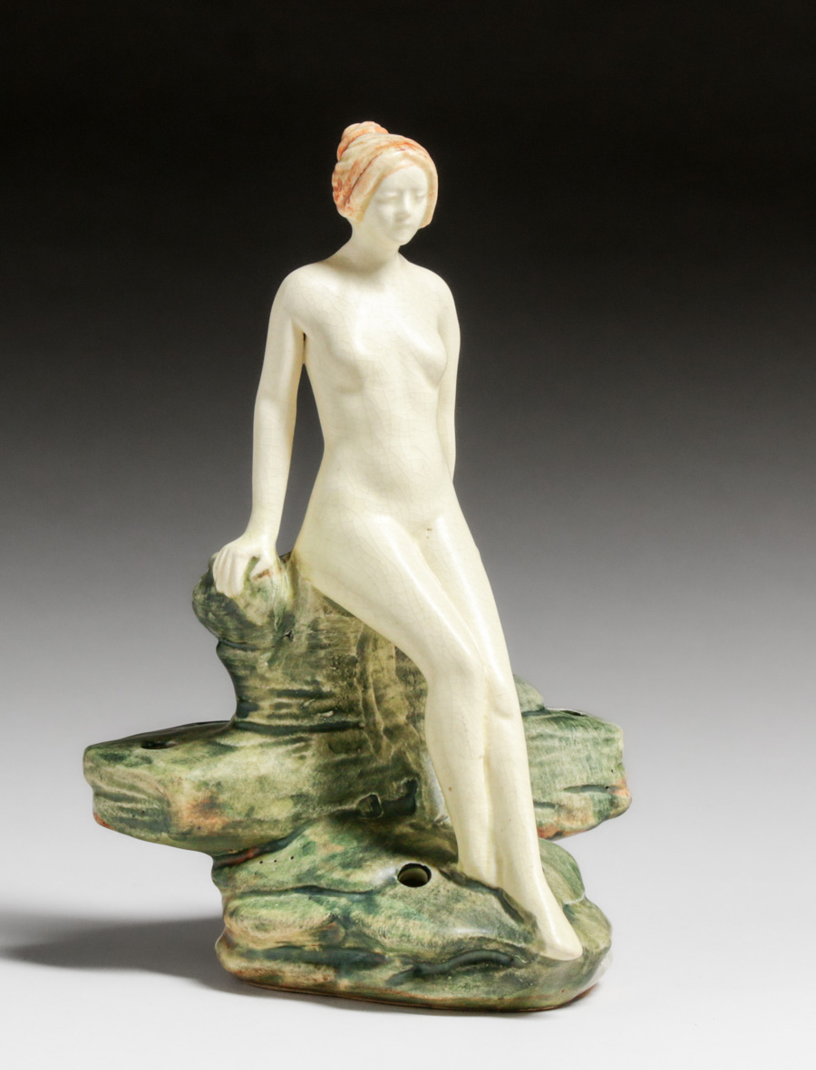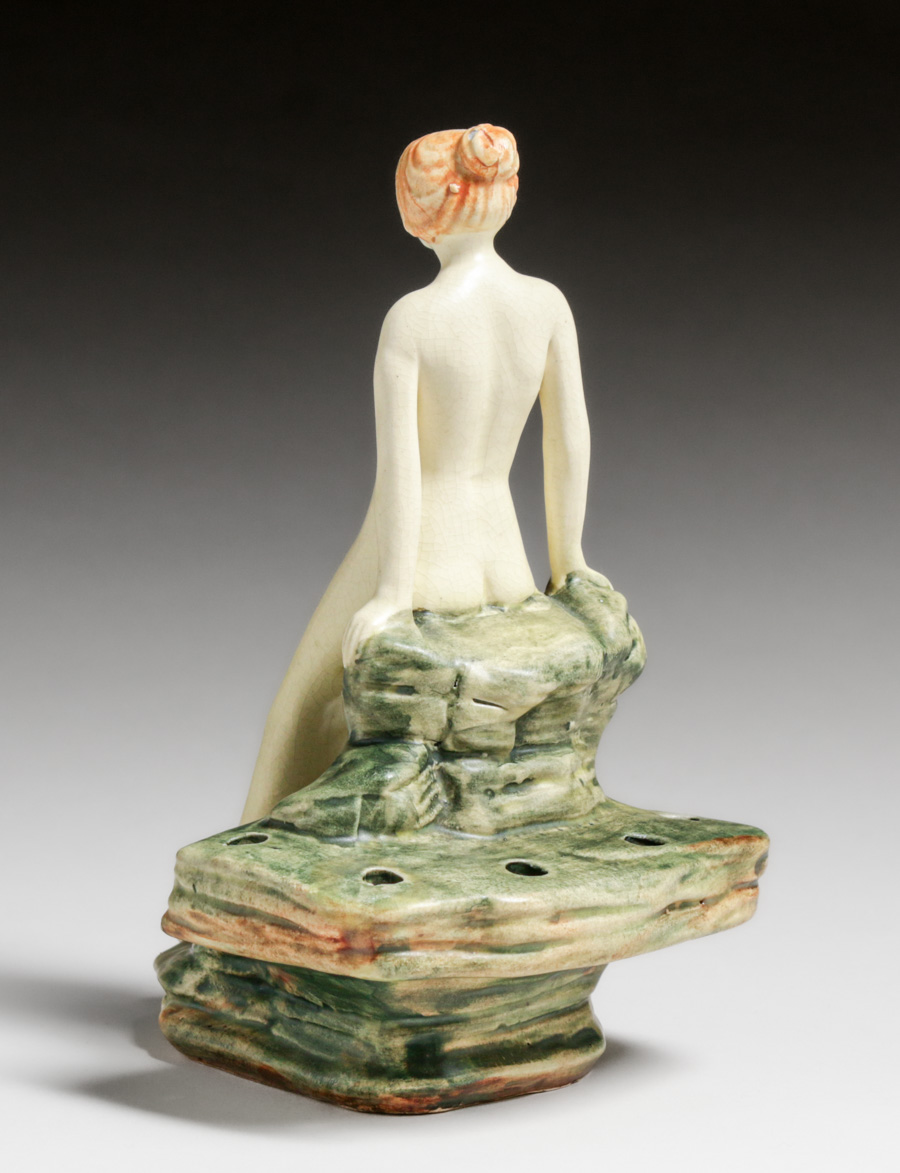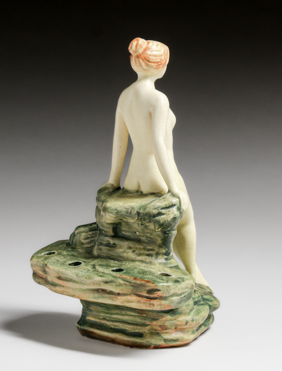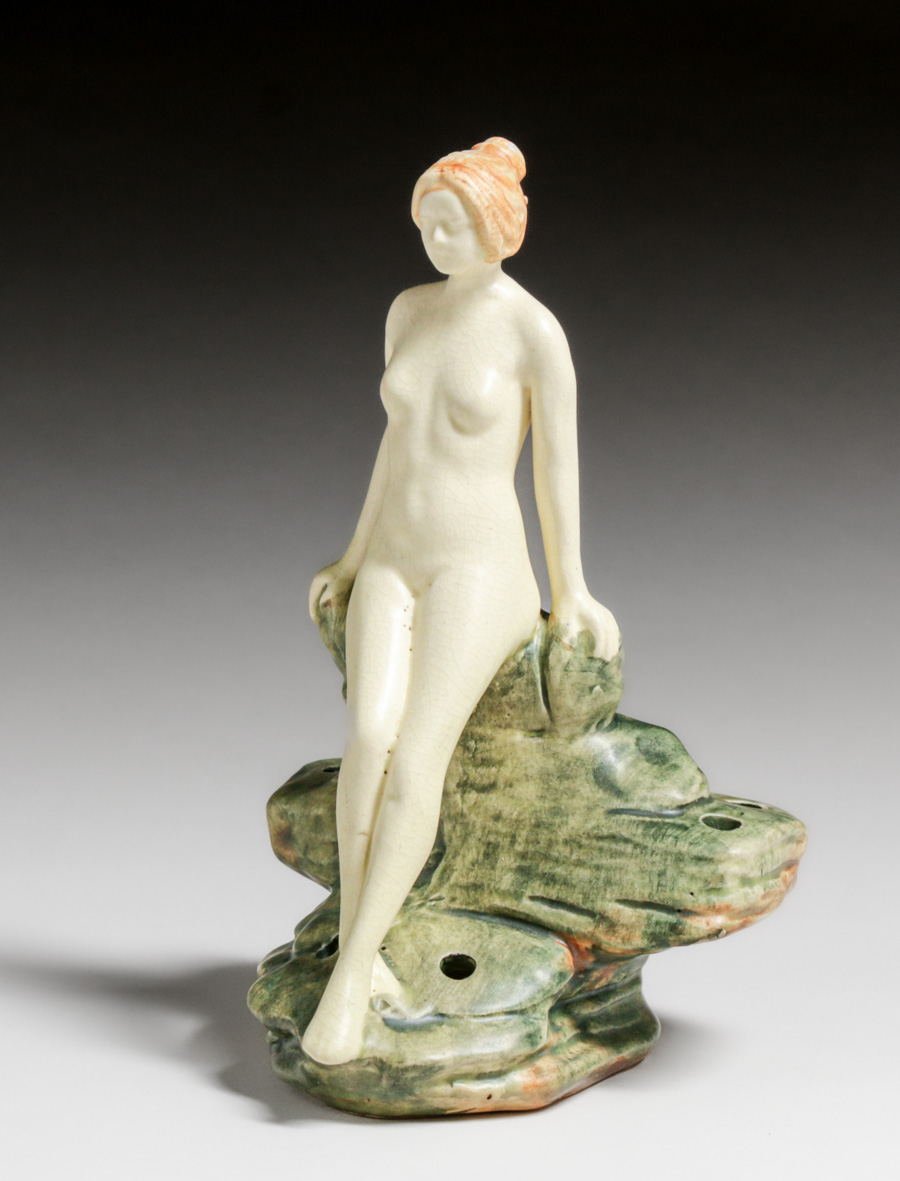 21752. Weller Muskota Art Nouveau Nude Figural Flower Frog c1920s. Unsigned. Perfect condition. 8″h x 5,25″ x 5.25″ $450