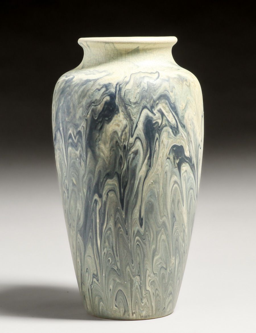 Weller Pottery Matte Glazed Bo Marblo Marbleized Vase c1915. Large matte glazed pieces of Weller Bo Marblo Marbleized are quite rare. Signed. Perfect condition. 13.5"h x 6.5"d SOLD