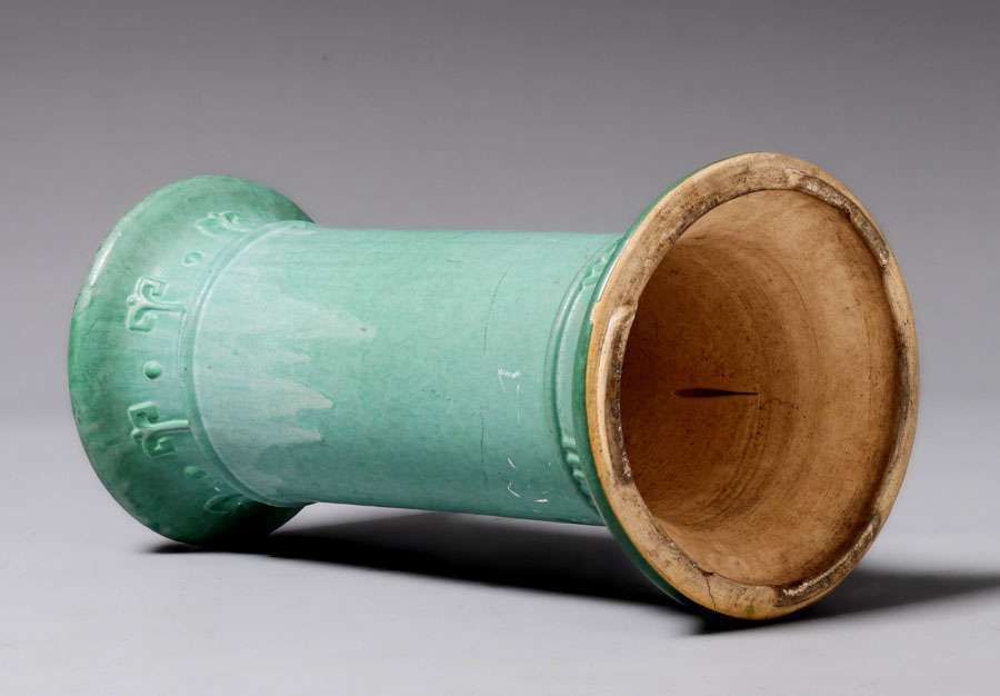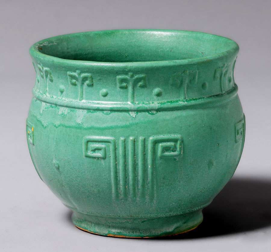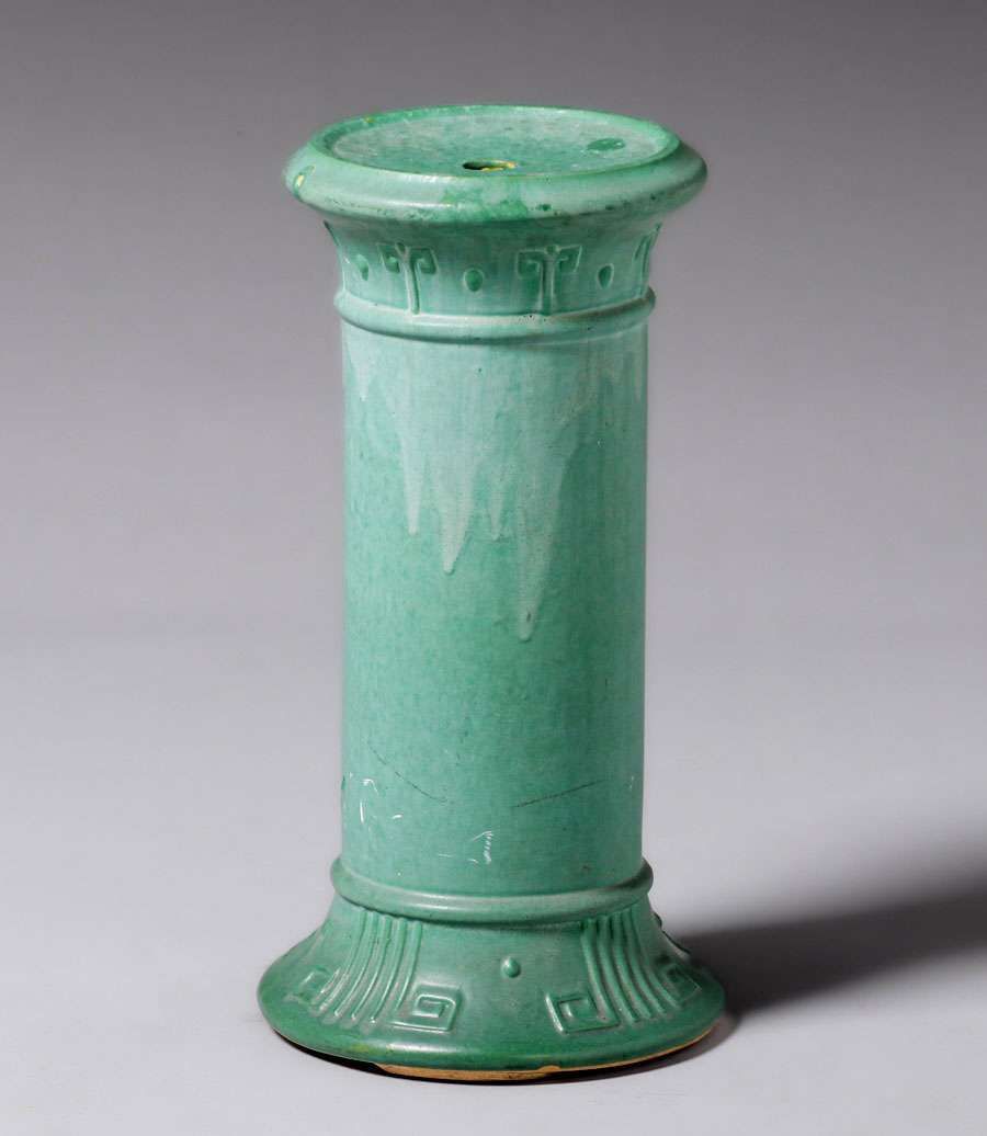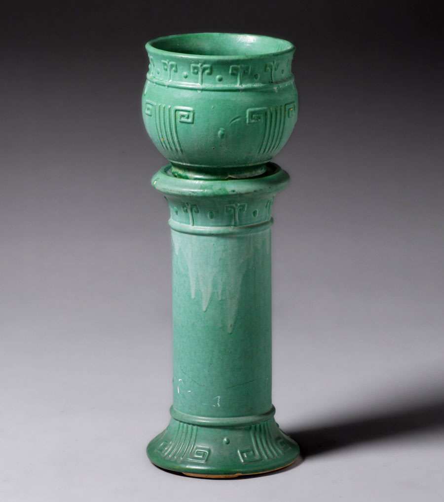 - Zanesville Stoneware Matte Green Jardiniere & Pedestal c1910