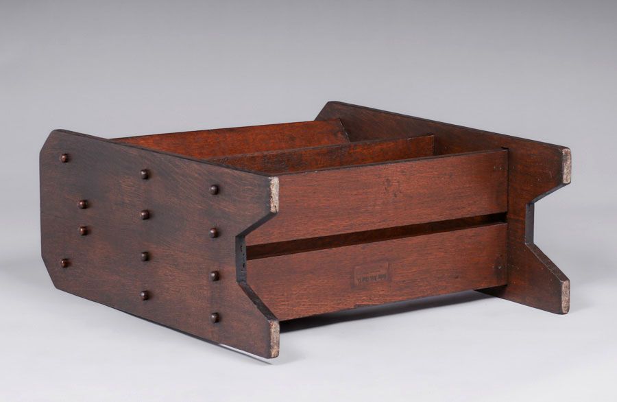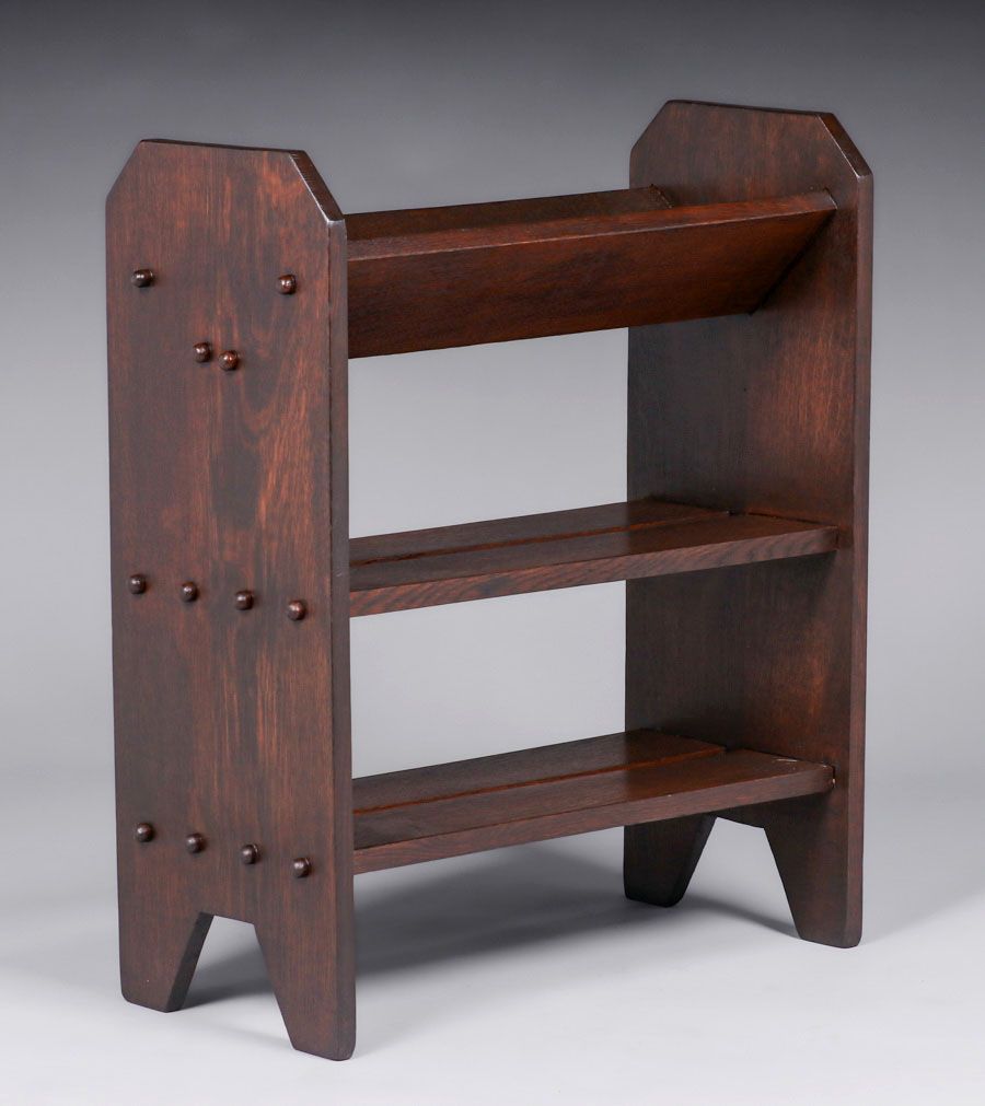 Barber Brothers - Hastings, MI Book Trough Magazine Stand c1910. Signed. Very nicely refinished. Rock solid sturdy. 26"w x 31"h x 12"d SOLD