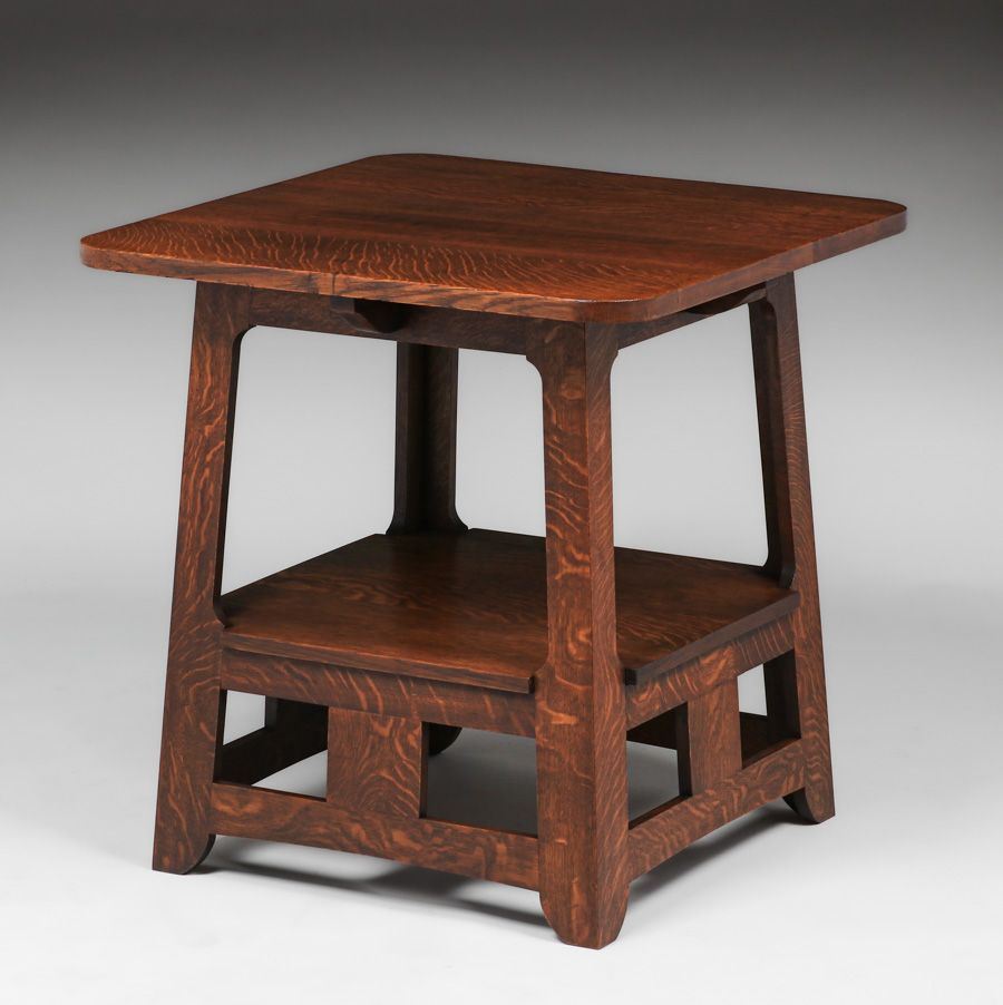 Brooks Furniture Co Cutout Pagoda Table c1910. Unsigned. Top refinished perfectly to match original finish base. 30.5"h x 29.75" x 29.5" $4500