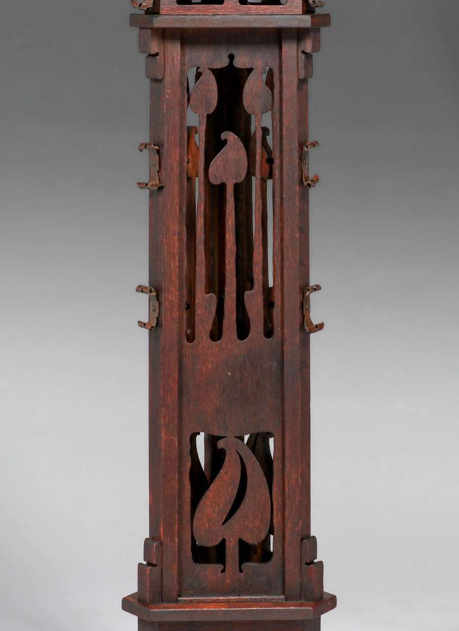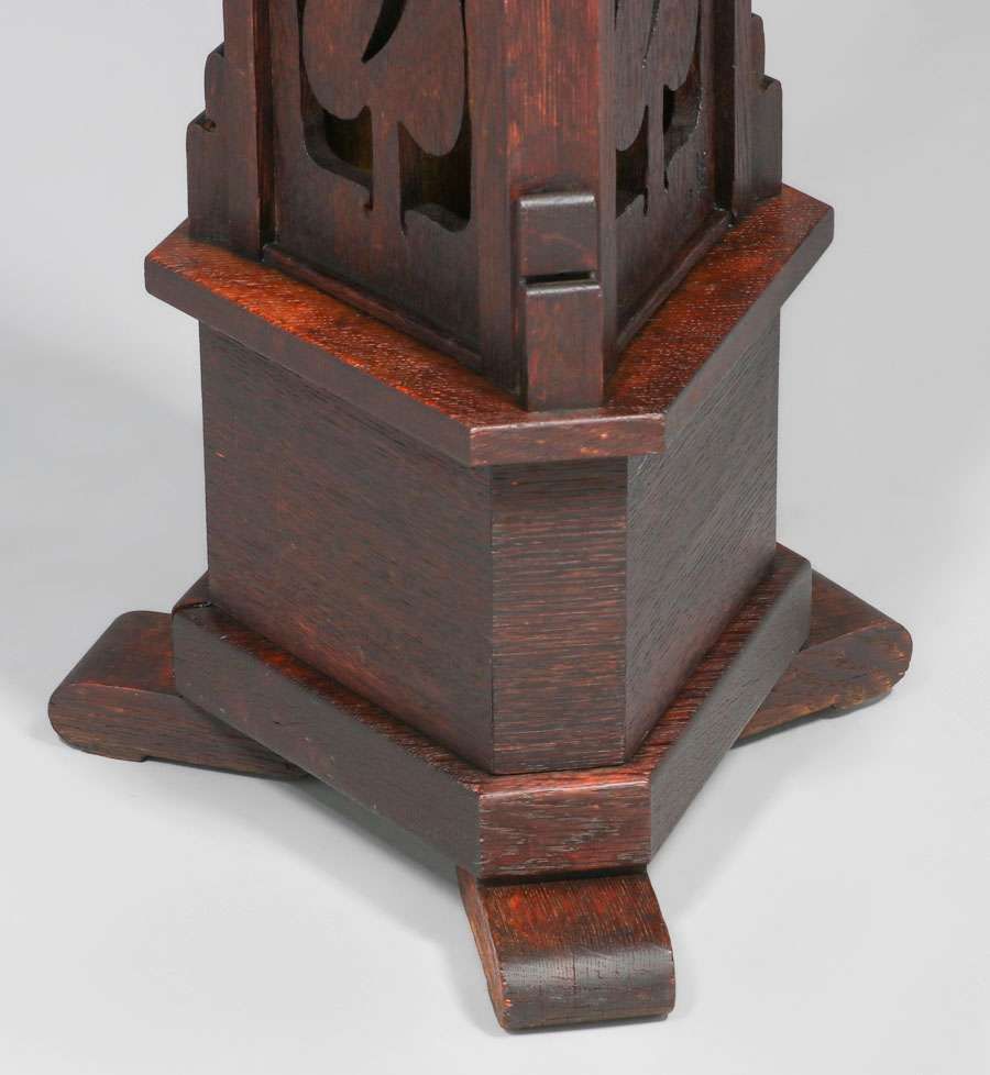 Charles Rohlfs Hand-Carved Oak & Hammered Copper Tall Pedestal Candle Stand 1906. Provenance: Collection of Don Magner. Literature: Drama in Design: The LIfe and Craft of Charles Rohlfs , James, pg. 51 The Artistic Furniture of Charles Rohlfs , Cunningham, pg. 176 Signed. Excellent original finish. 75"h x 16.25"d SOLD