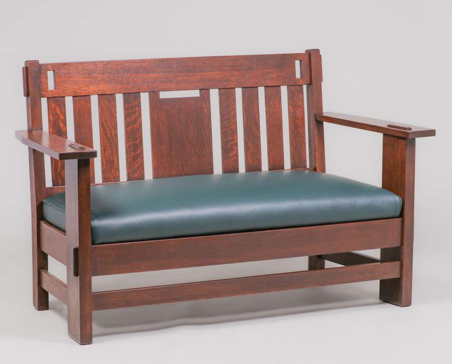 - Charles Stickley Cutout Bench & Chair Set c1910