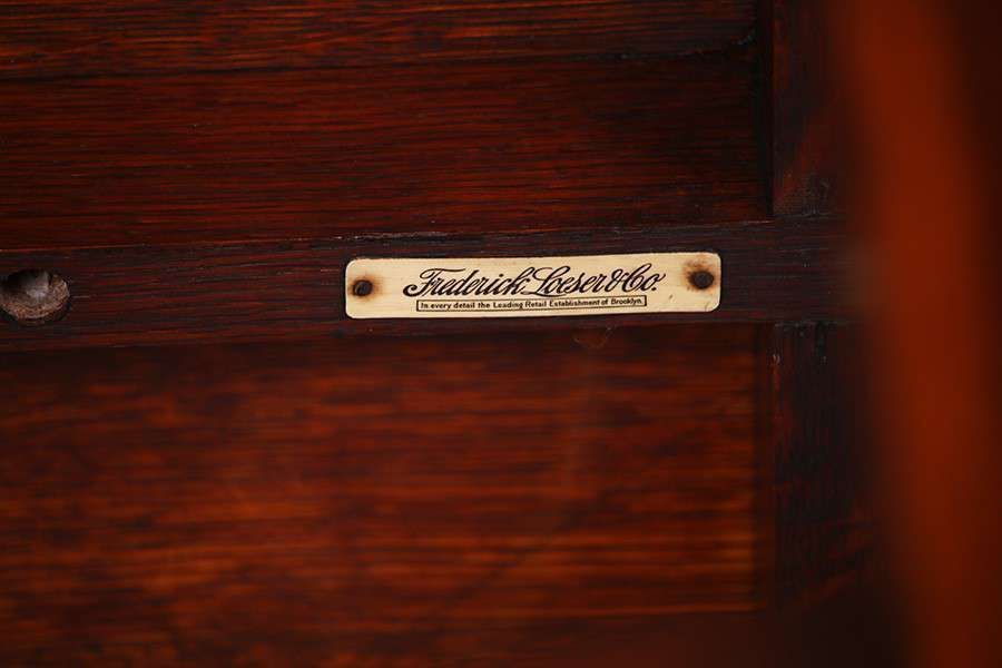 Attributed to Charles Stickley Lamp Table. Unsigned except for Retailer's Label "Fredrick Loeser & Co Brooklyn, NY". Top refinished, base has it's original finish. 28"h x 25"d SOLD
