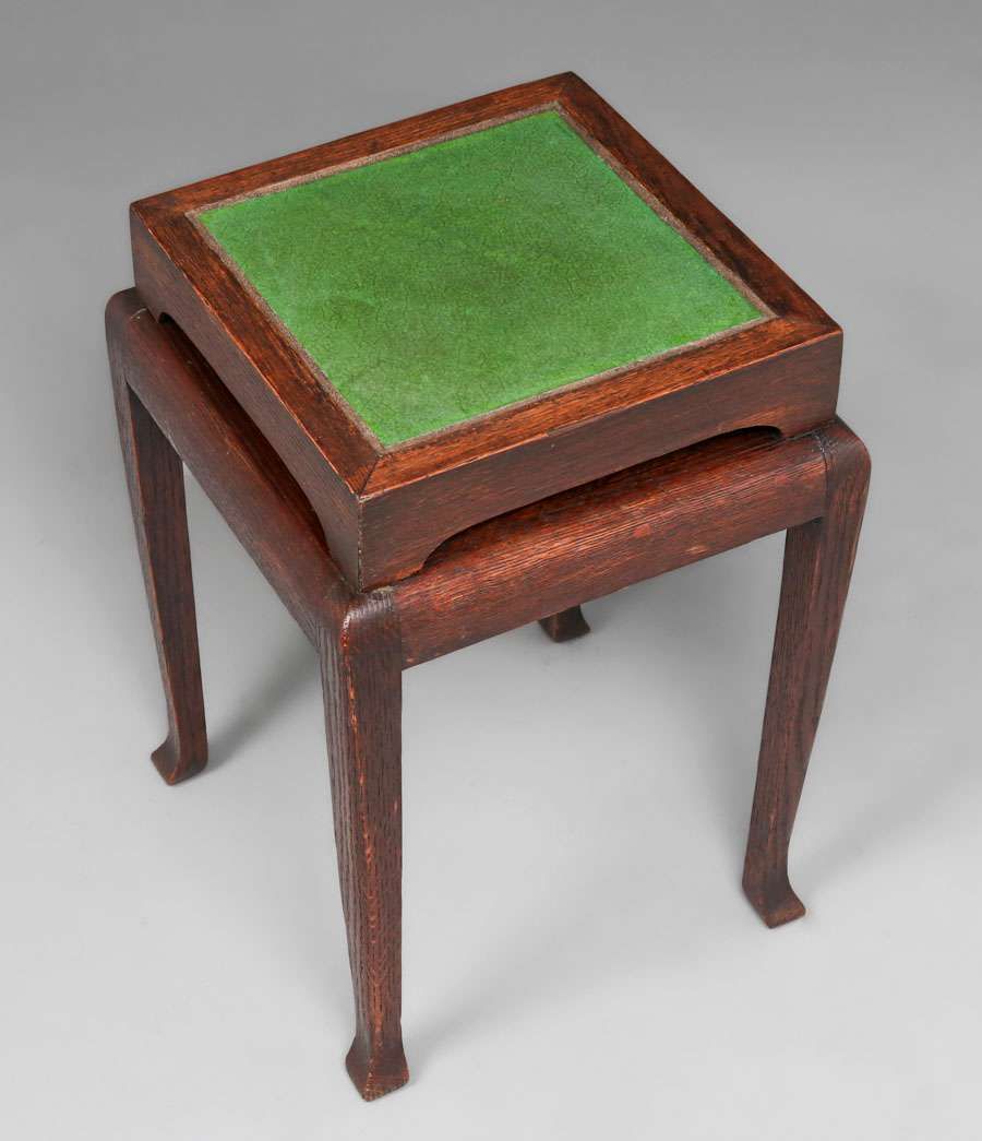 - Early Gustav Stickley #13 Grueby Tile-Top Mikado Plant Stand c1900