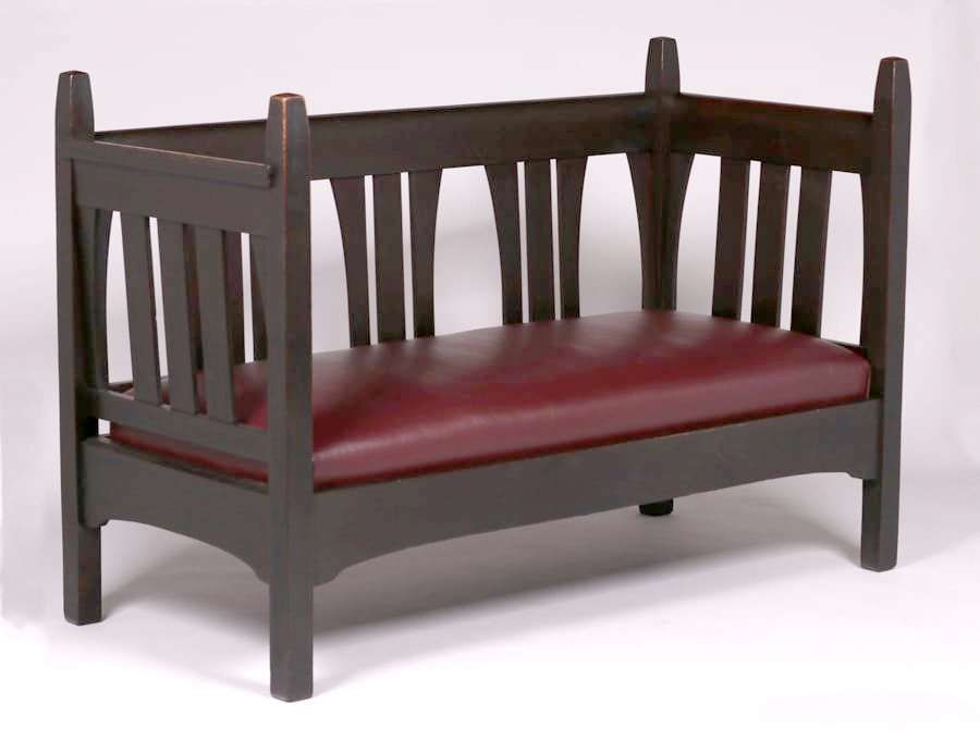 - Early Gustav Stickley #165 "Divan" Pencil-Post Settle c1901