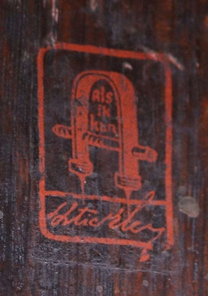 Early Gustav Stickley #2578 Chalet Desk Chair c1902. Signed with early red decal. Excellent original finish. New rush seat. Very sturdy SOLD