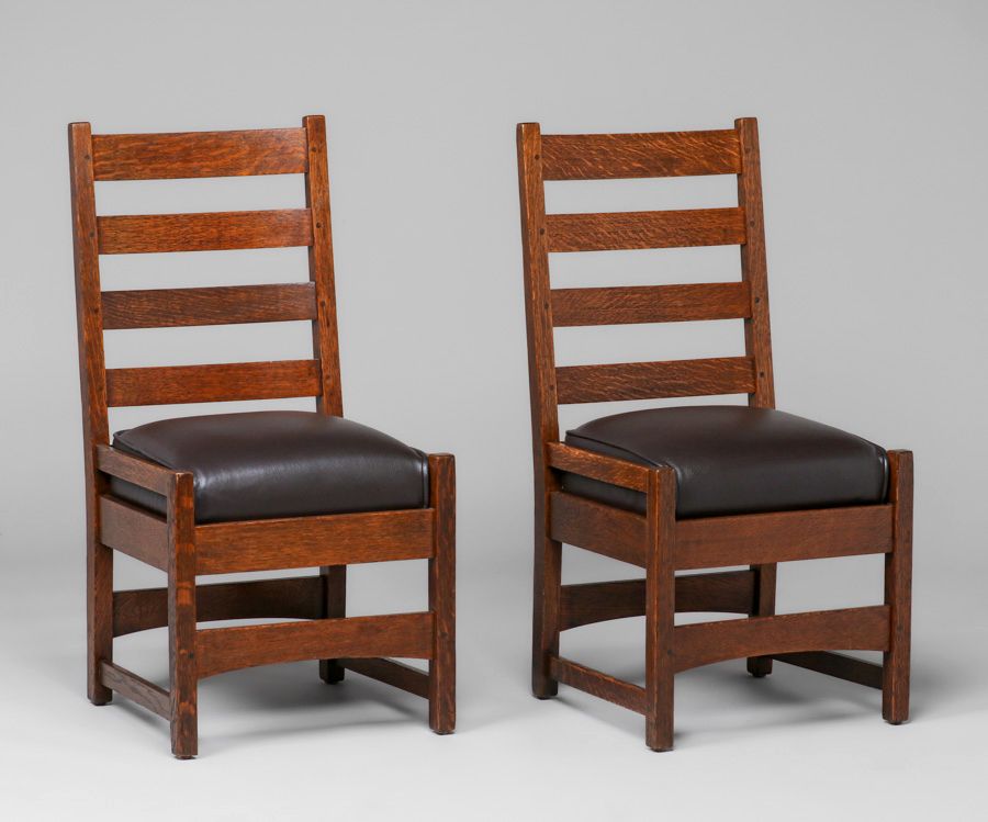 - Early Gustav Stickley #2608 Tall Ladderback Side Chairs c1902