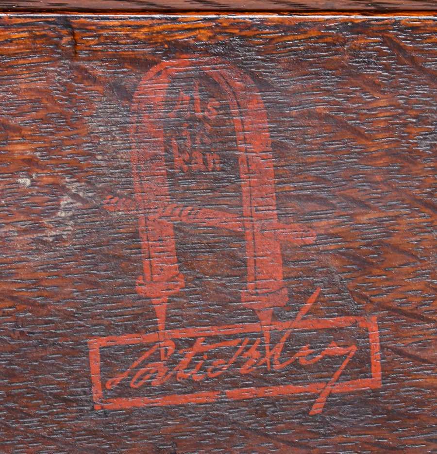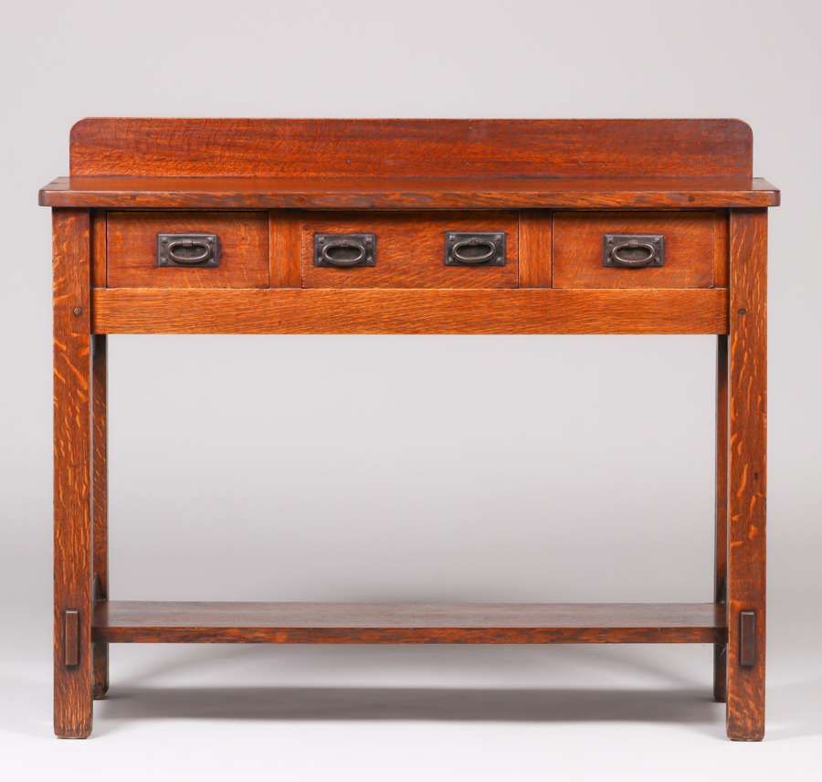 Early Gustav Stickley Three-Drawer Server c1901-1902. Unusual variation with two pulls on center drawer. Signed with early mark. Very nice old refinish. 40"h x 48"w x 18"d SOLD