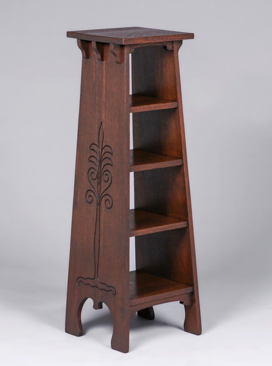 - Early Gustav Stickley Tree-of-Life Magazine Stand c1900