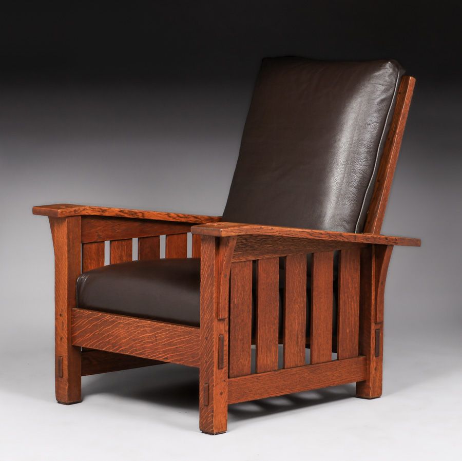 - Gustav Stickley #369 Slatted Bentarm Morris Chair c1912-1915