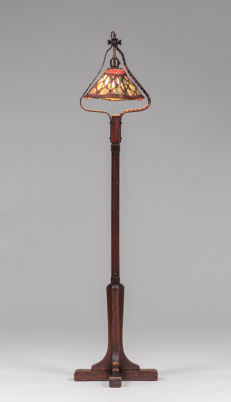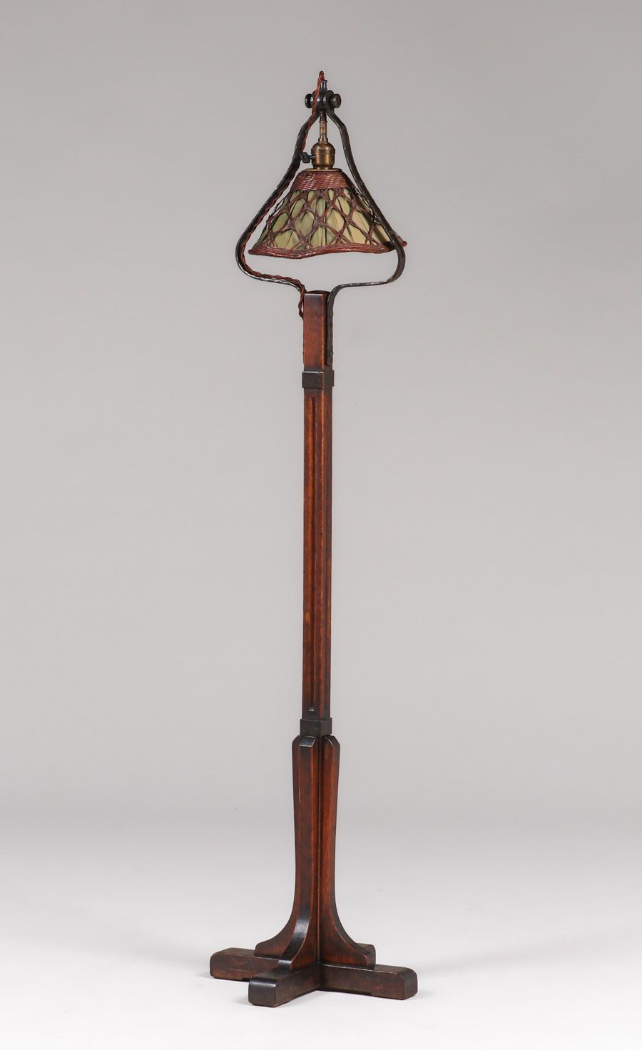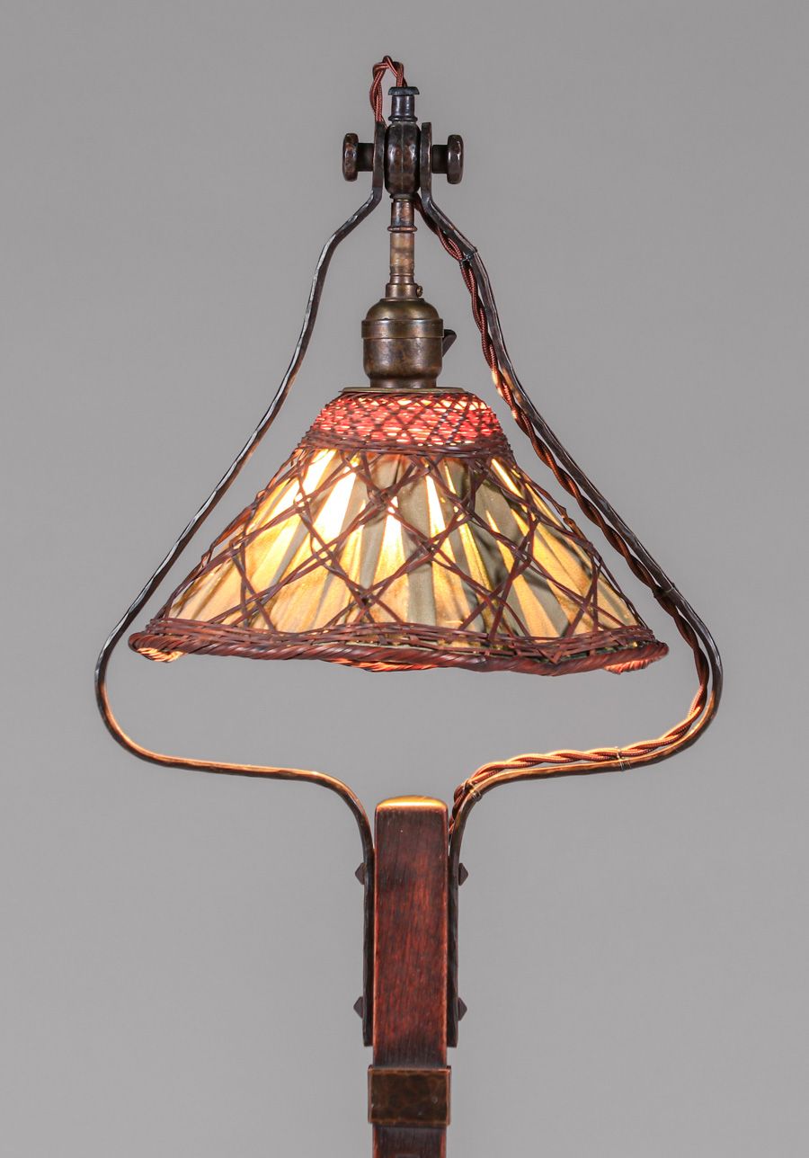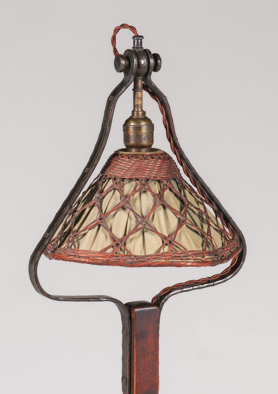 - Gustav Stickley #500 Oak & Wicker Floor Lamp c1905