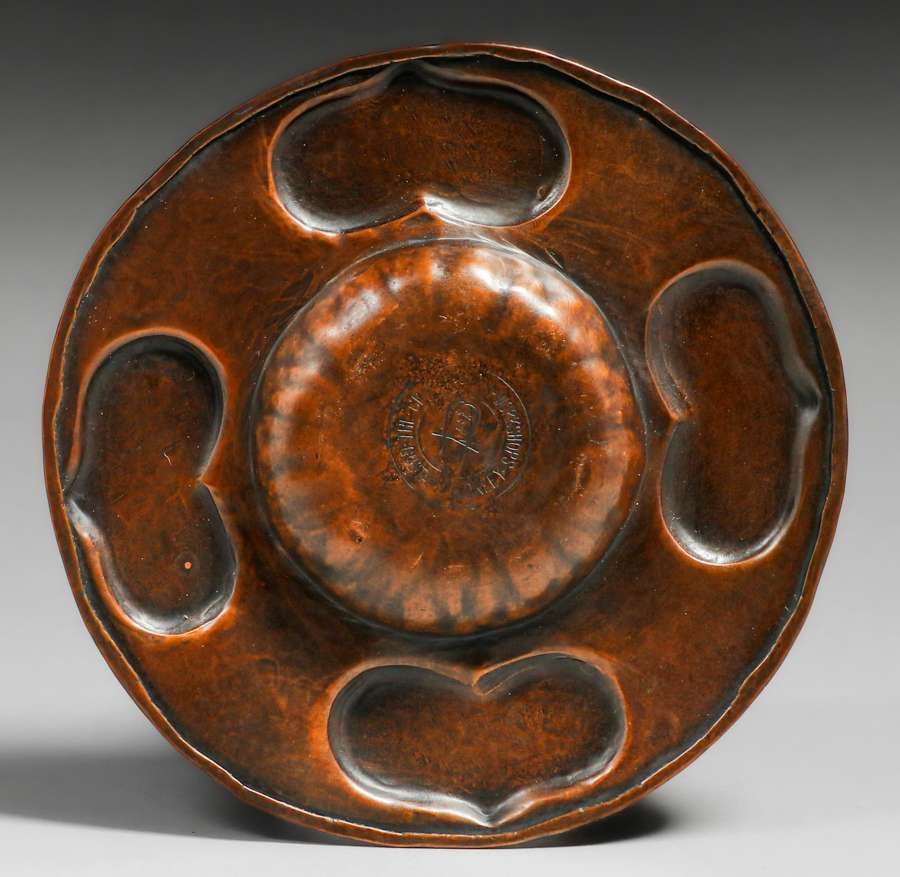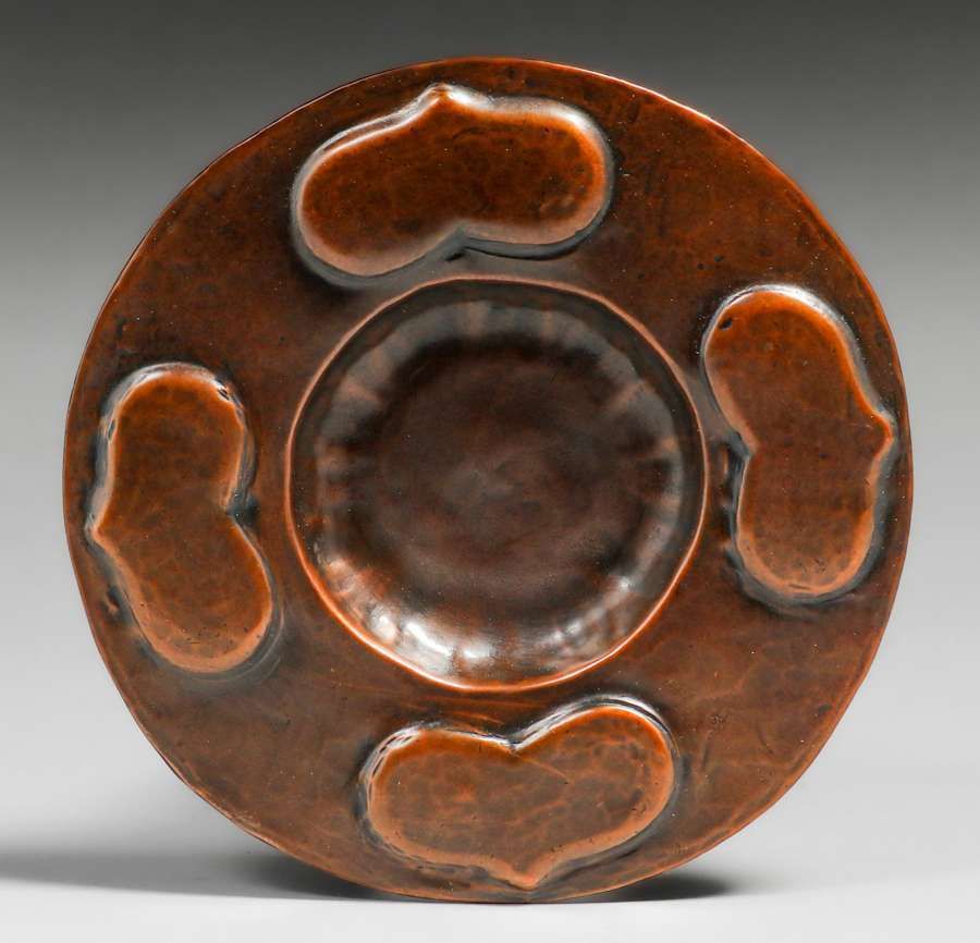 - Gustav Stickley Hammered Copper Heart Tray c1910