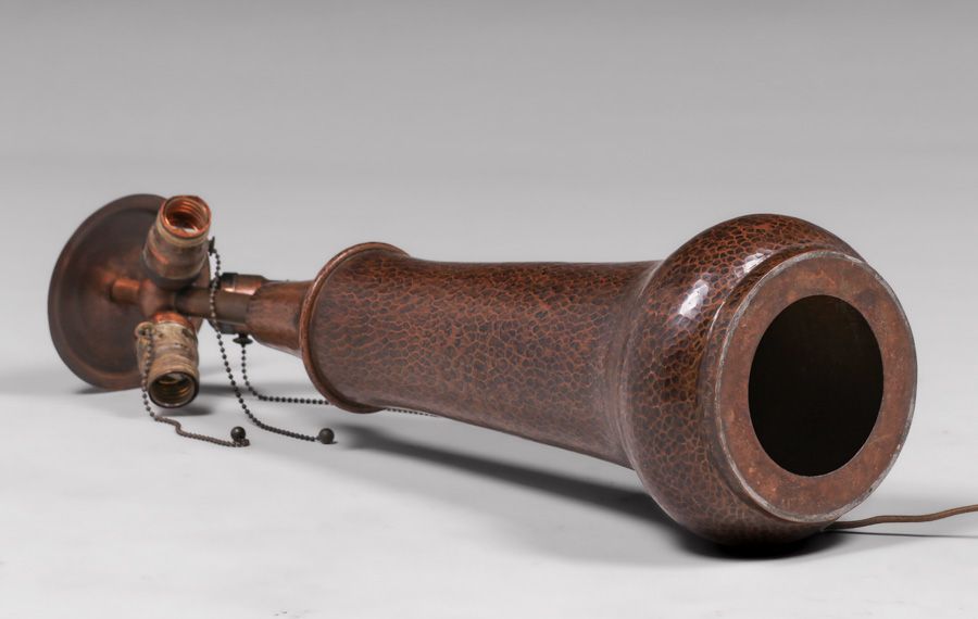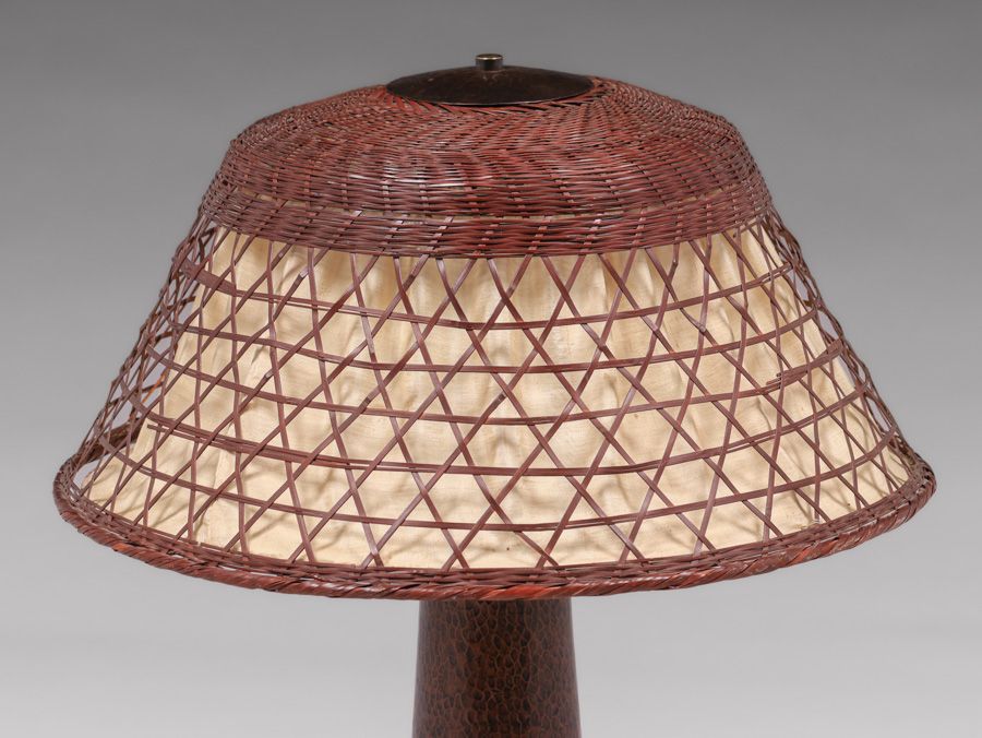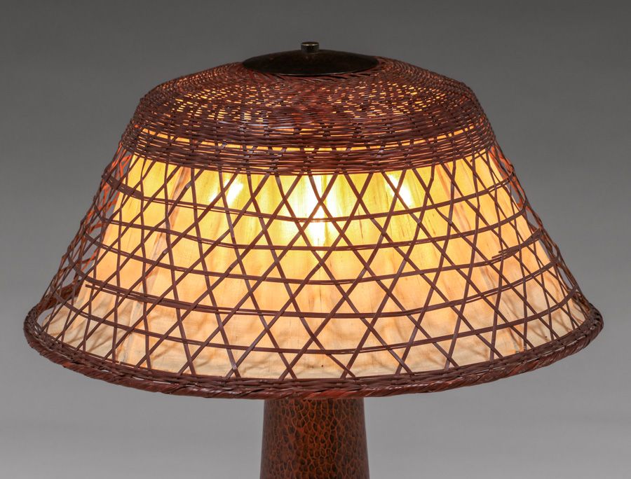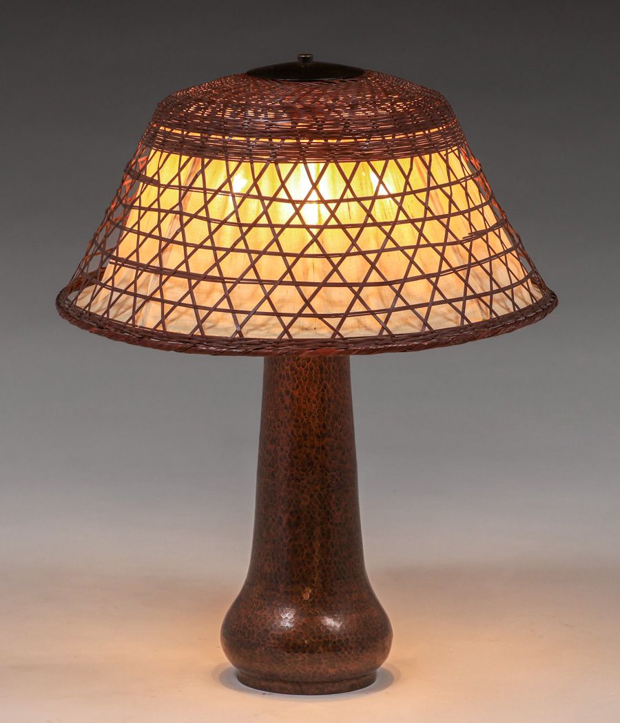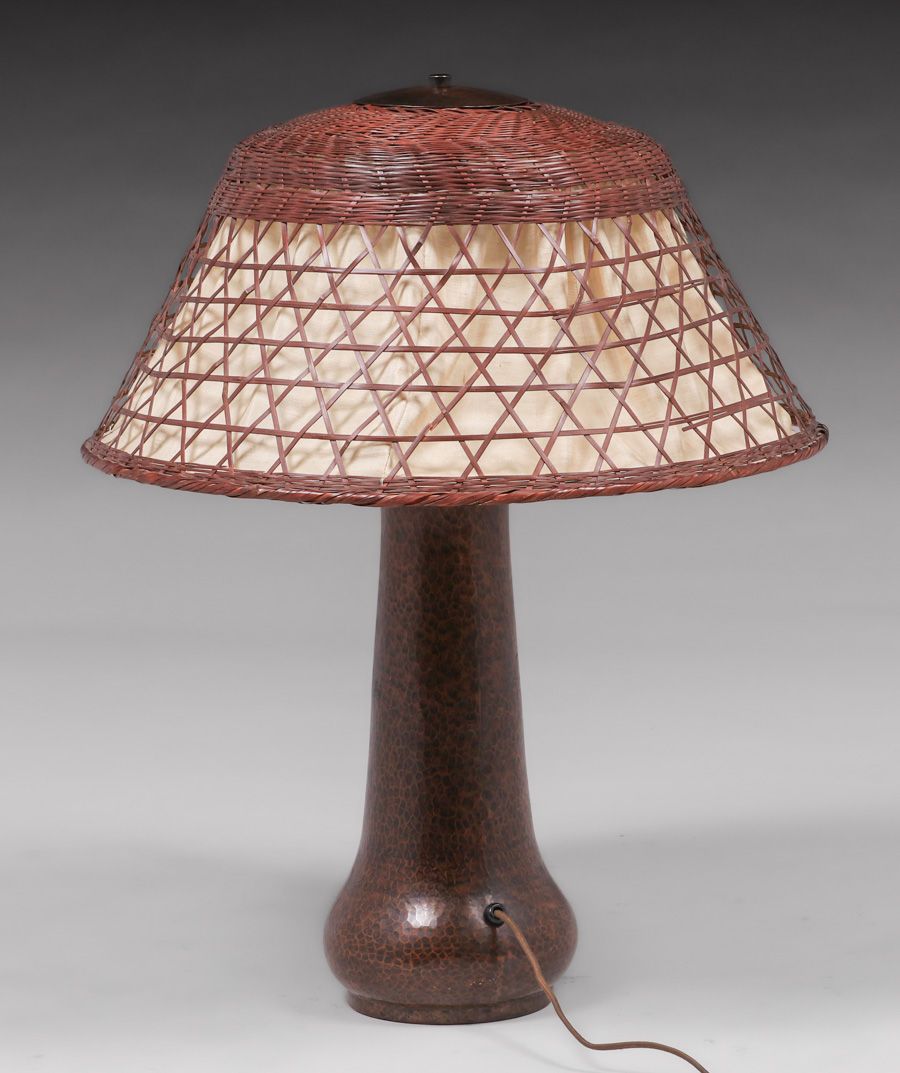 - Gustav Stickley Hammered Copper & Japanese Wicker Shade c1910