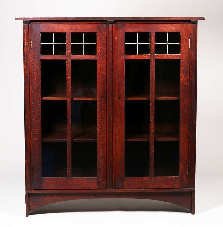 Gustav Stickley - Harvey Ellis designed two-door bookcase with original leaded glass squares at top of doors c1904-1905. Signed. Excellent original finish. 58"h x 53.75"w x 14"d SOLD