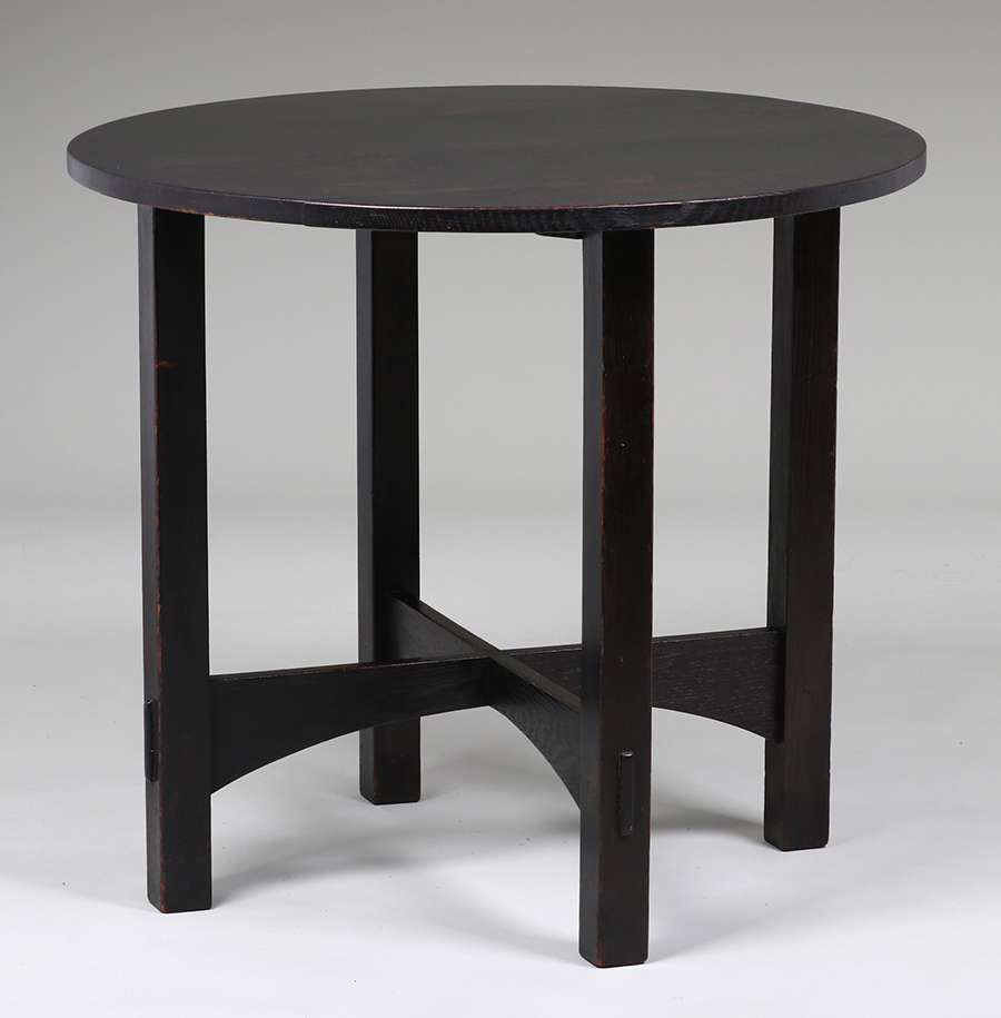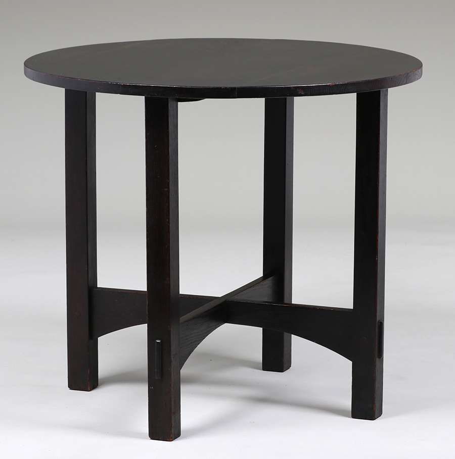 Gustav Stickley – Harvey Ellis Designed Lamp Table c1903. Top refinished perfectly to match original finish base. Signed with early 1902-1903 mark. 30″d x 26.5″h SOLD