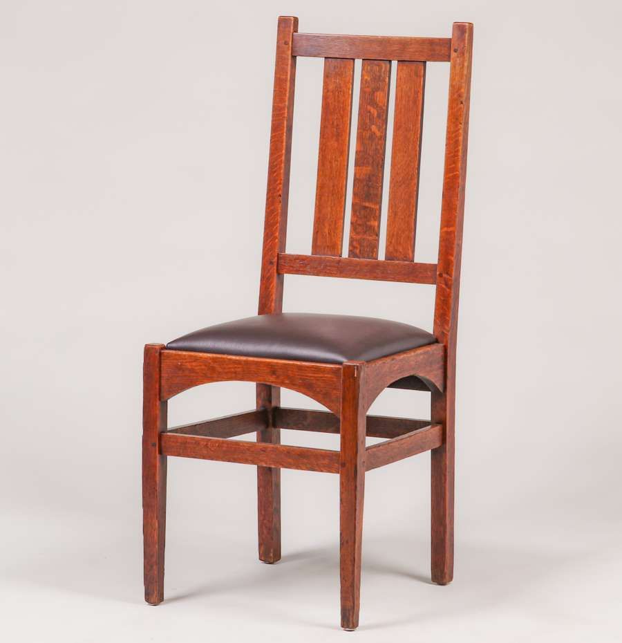 Gustav Stickley - Harvey Ellis Designed Set of 4 Dining Chairs c1905. Signed. Excellent original finish. Very sturdy. 40"h x 16.75"w x 16.25"d SOLD