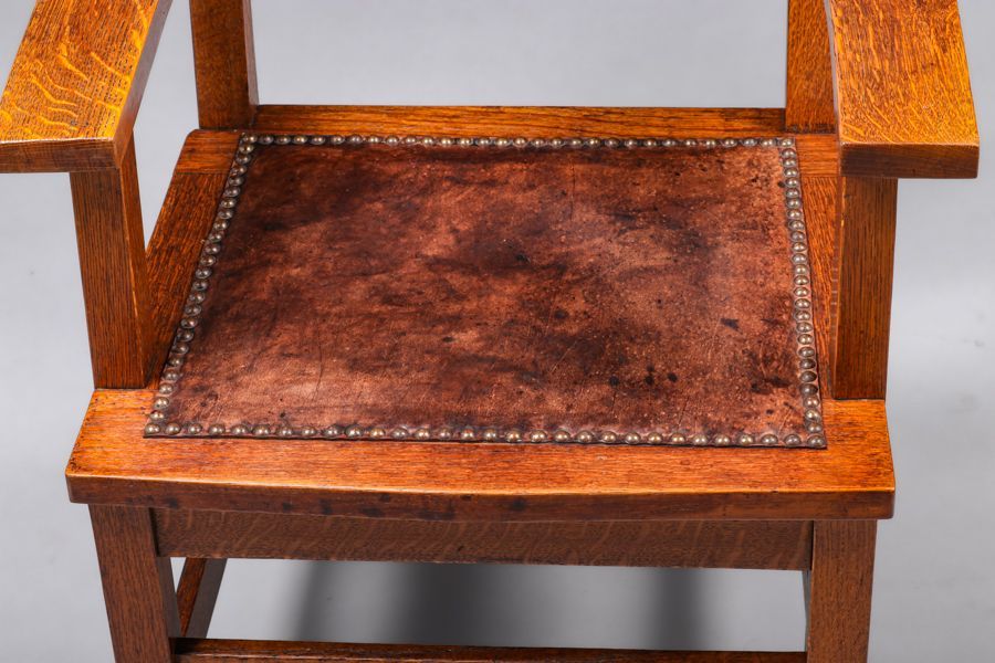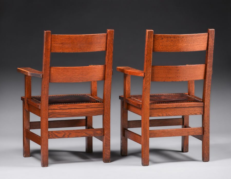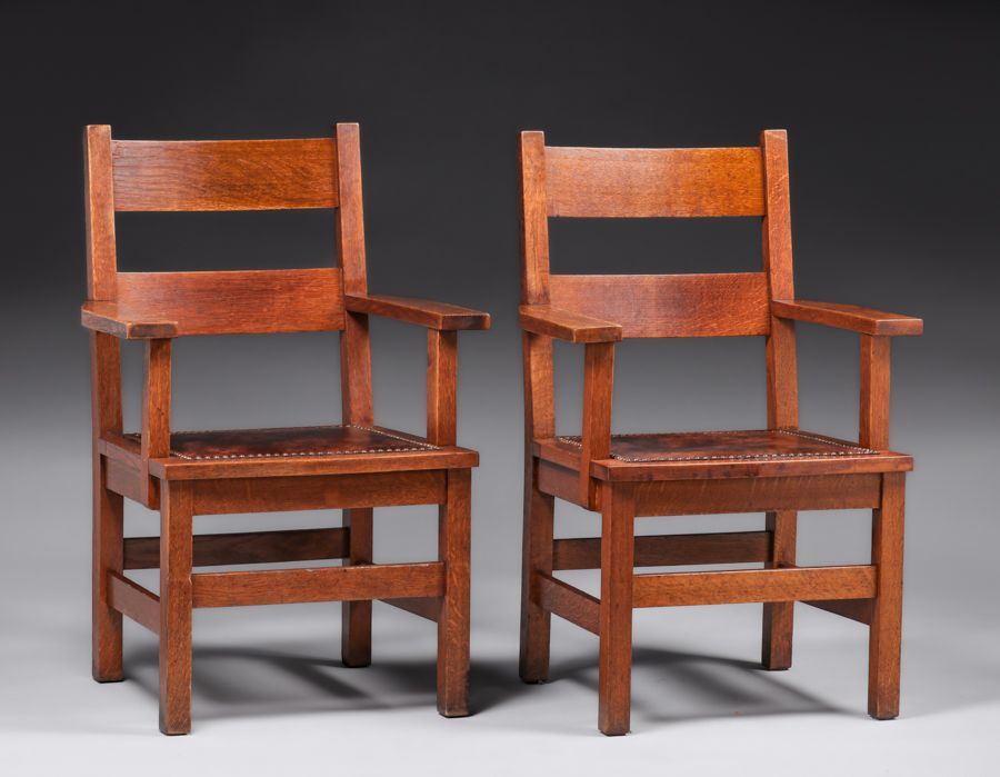 - Pair Early Gustav Stickley #1304 Armchairs c1902