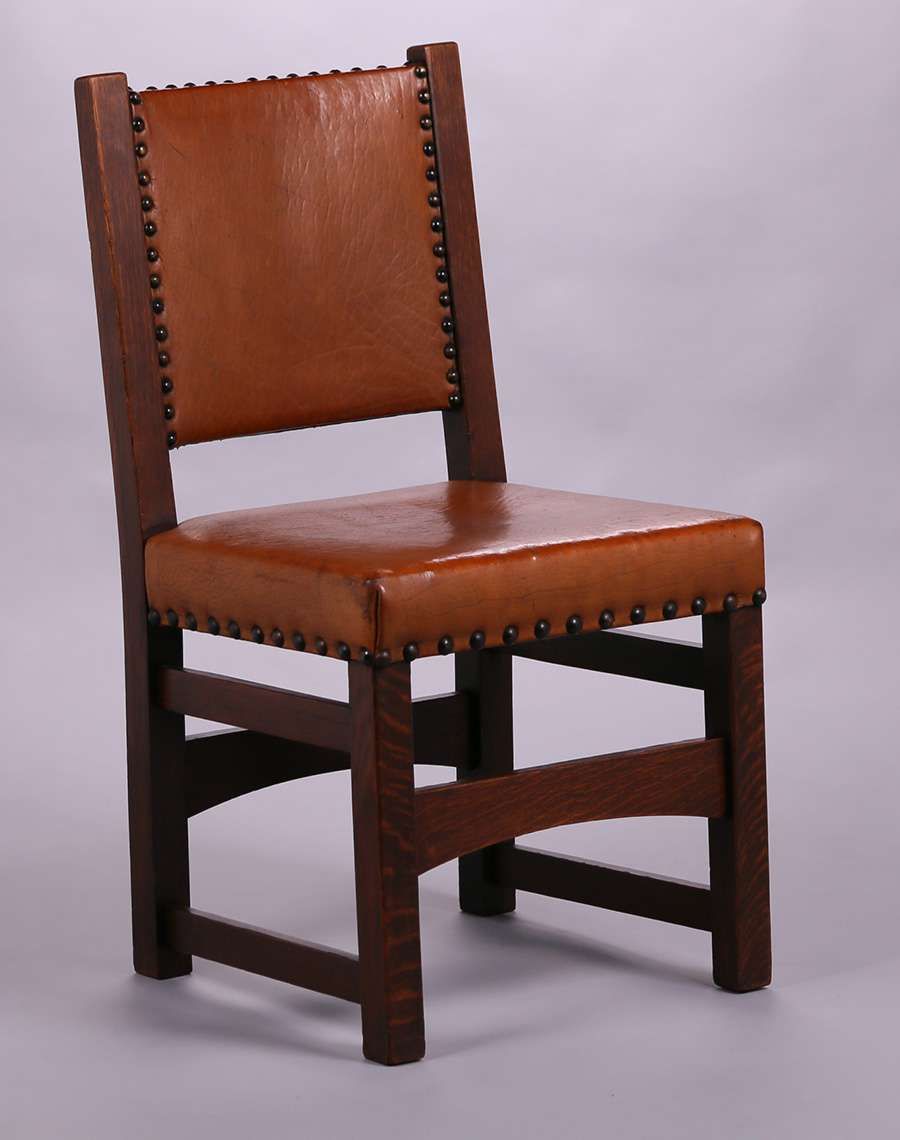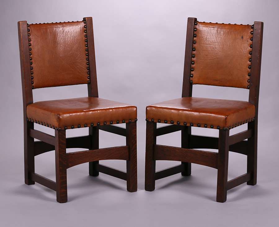 - Pair Early Gustav Stickley Side Chairs c1902