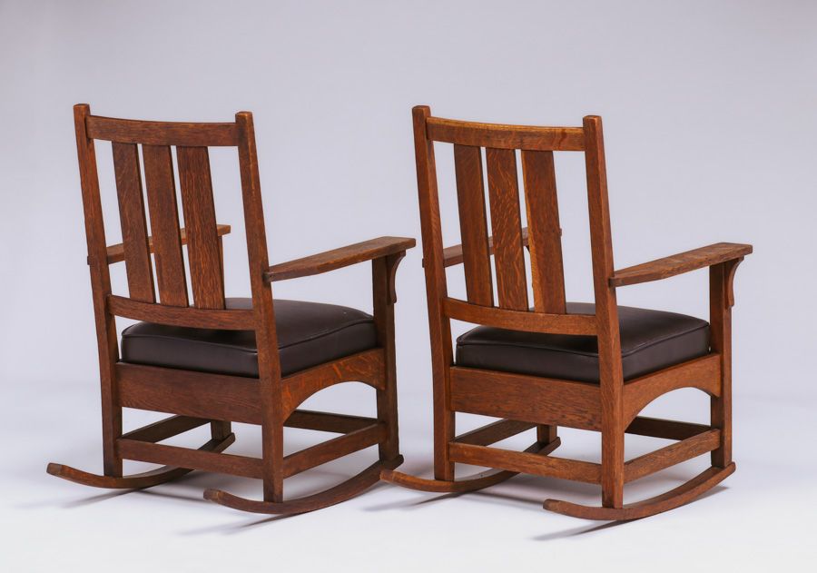 - Pair of Gustav Stickley – Harvey Ellis Designed Rockers c1905