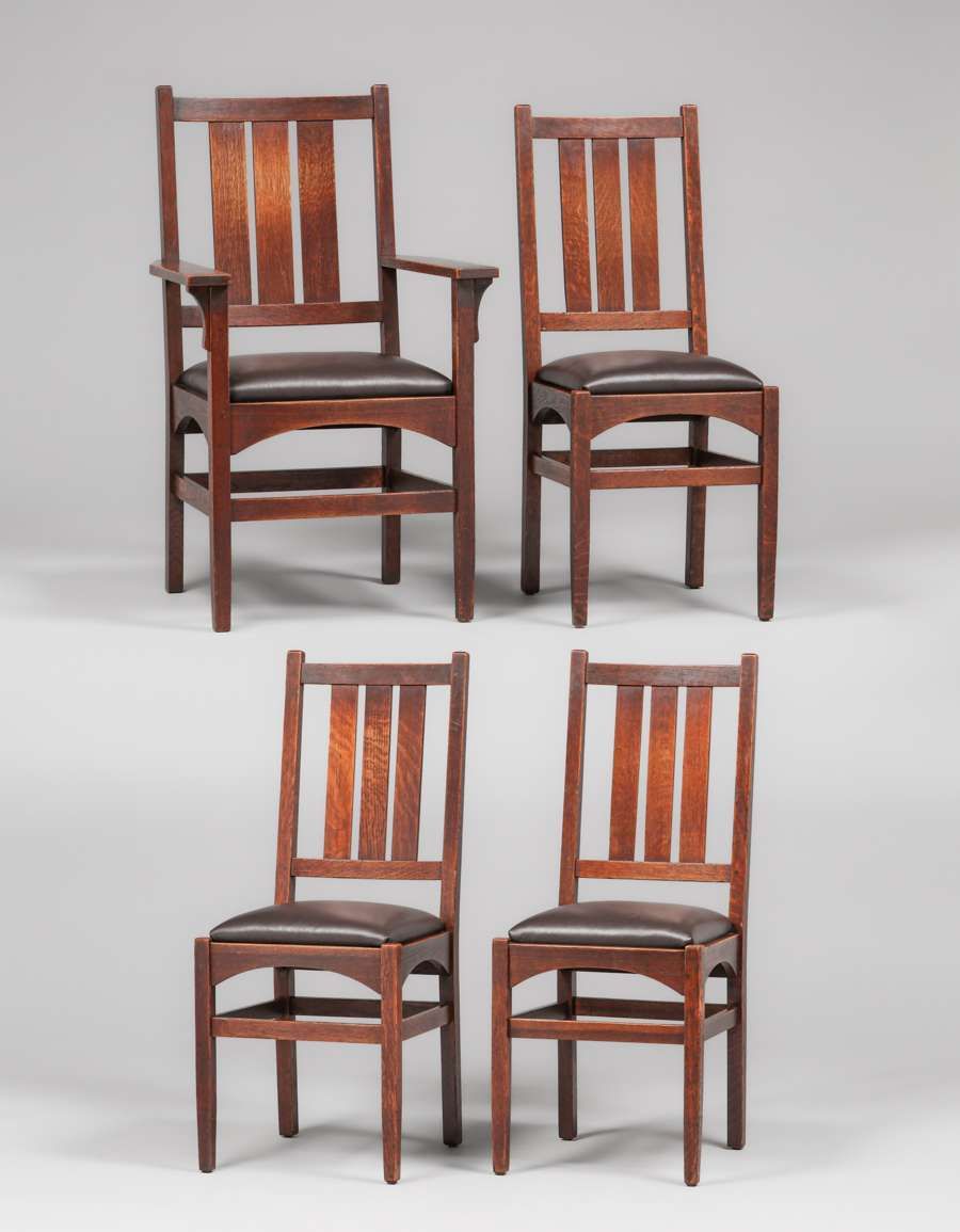 - Set of 4 Gustav Stickley - Harvey Ellis Designed Dining Chairs c1912
