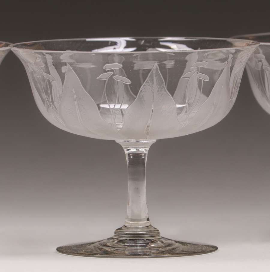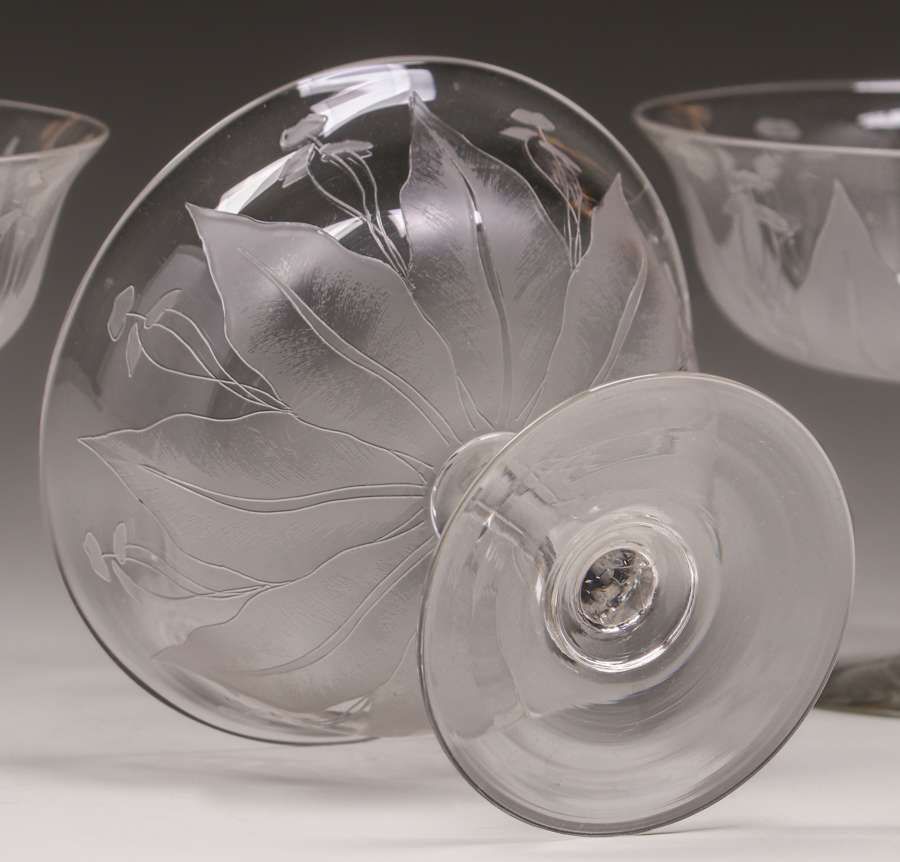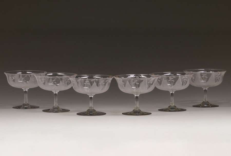 - Set of 6 Gustav Stickley Lily Pattern Crystal Glasses c1915