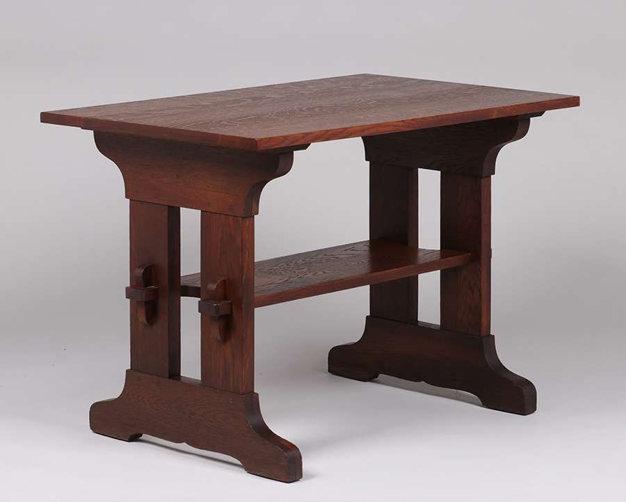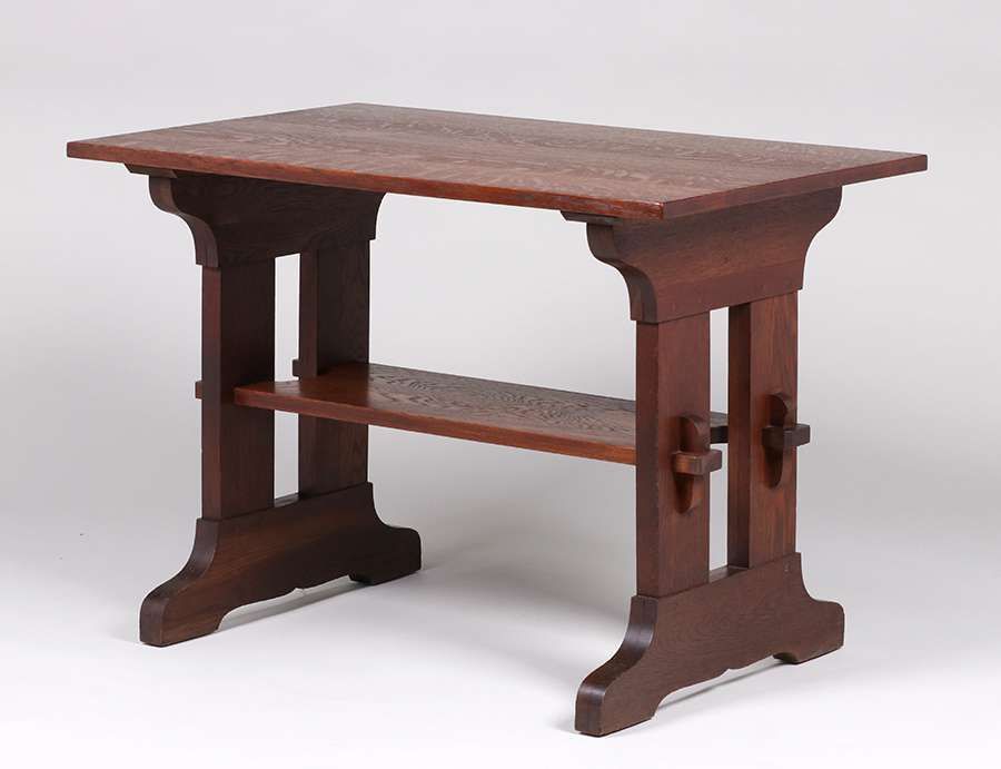 - Small Gustav Stickley 42"w Trestle Table c1904