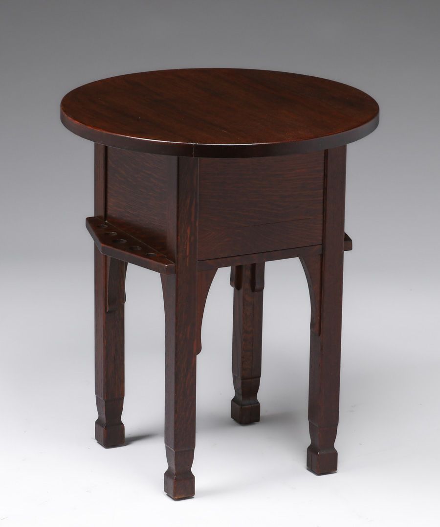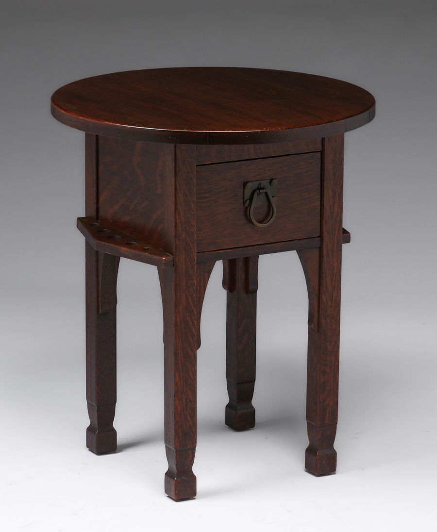 Imperial Furniture Co One-Drawer Side Table c1910. Unsigned. Top refinished perfectly to match excellent original finish. 26.5″h x 22.25″d SOLD