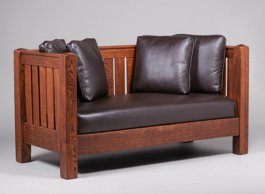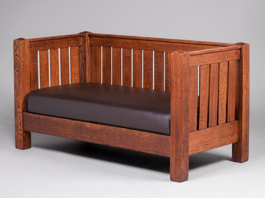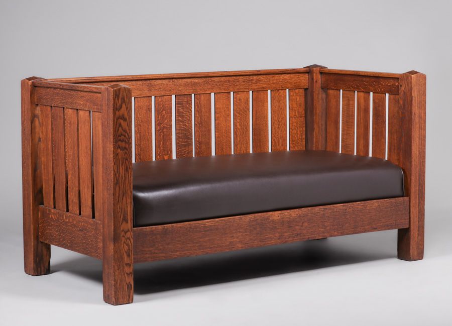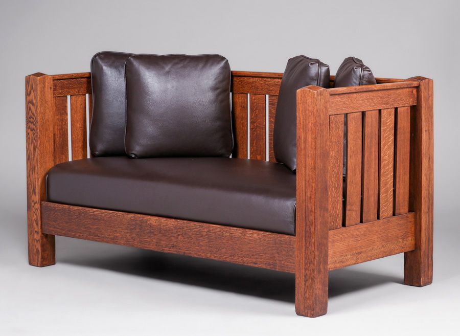Karpen Furniture Co Evenarm Settle c1910. Very similar to the rare L&JG Stickley #280 Evenarm Settle. Unsigned. Very nicely refinished. 63″w x 31″d x 34″h SOLD