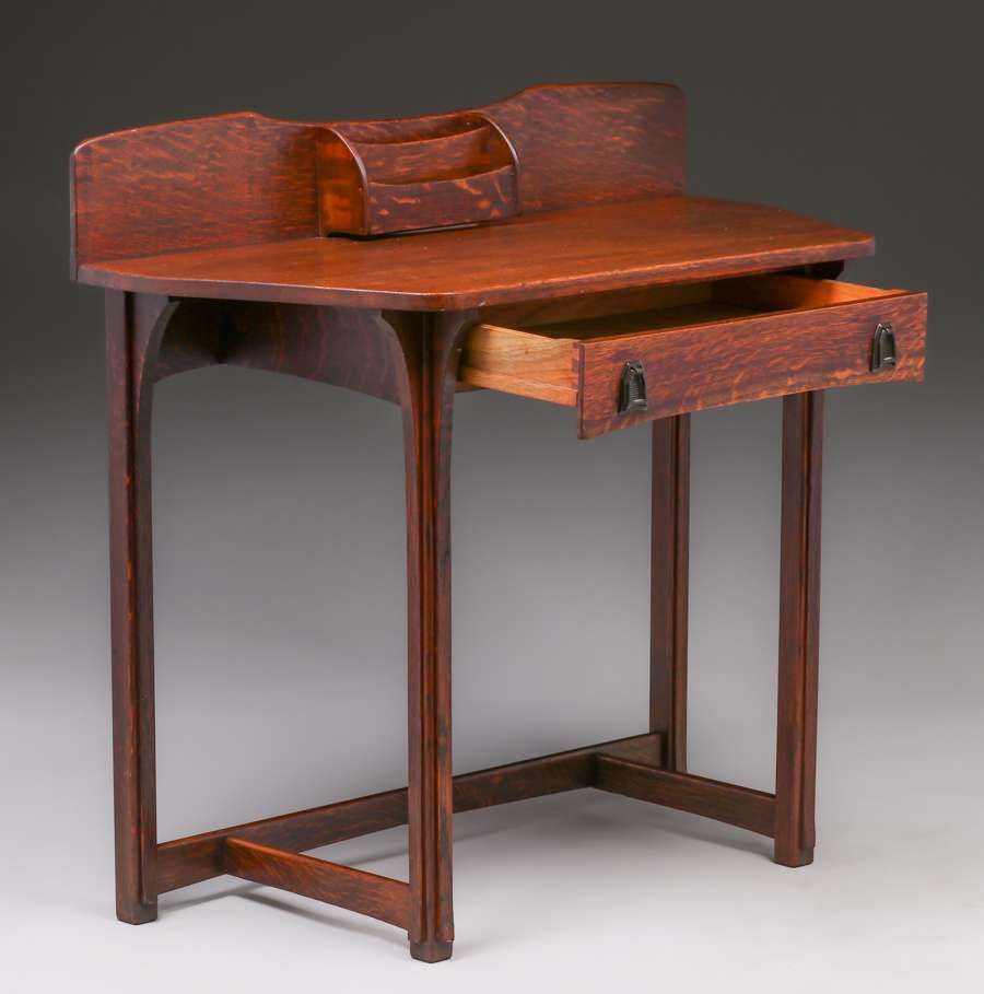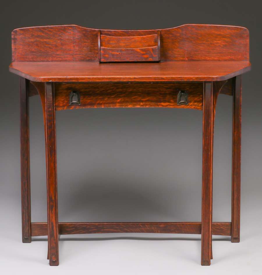 Lifetime Puritan One-Drawer Postcard Desk c1912. Unsigned. Excellent original finish. 38"w x 17.5"d x 35.5"h (29.5"h to top surface) SOLD