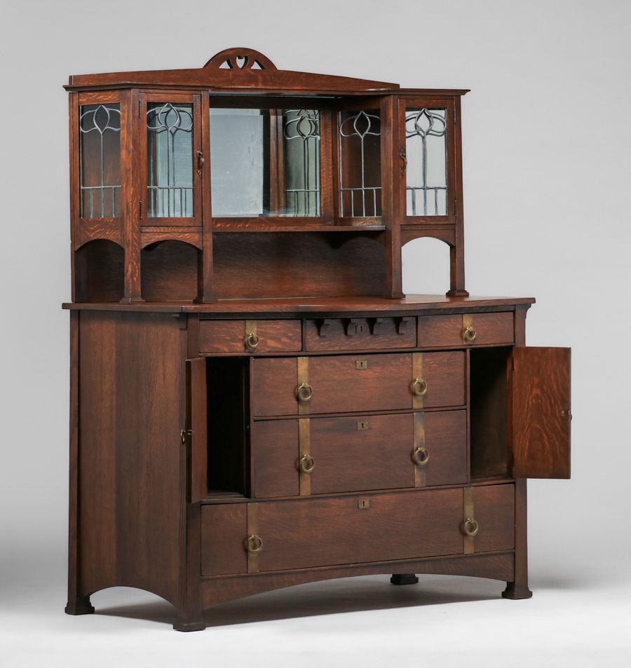 Early Grand Rapids Leaded Glass Hutch c1902. Unsigned. Very nicely refinished. Similar to early Limbert or early Stickley Brothers. 67 5/8"h x 54"w x 23.75"d $9500