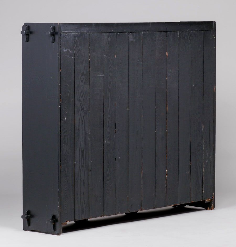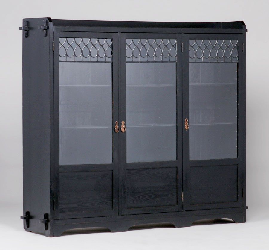 Early Limbert Three-Door Leaded Glass Bookcase c1902-1905. Unsigned. Excellent original black finish. 54"h x 64"w (with tenons) x 14"d SOLD
