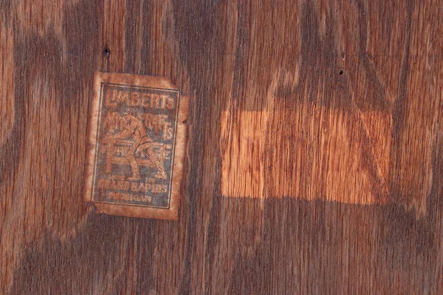 Rare Limbert #347 one-door spade cutout bookcase. Signed with early paper label c1905. Excellent original finish. 46.25"h x 16.5"w x 11.75"d SOLD