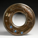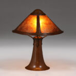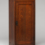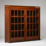16564. Limbert Cutout One-Door Bookcase c1910. Signed with branded mark. Excellent original finish. 50″h x 30″w x 12″d SOLD