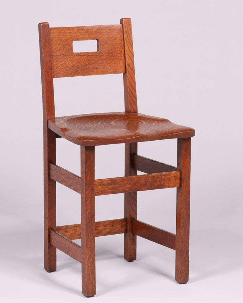 Limbert Cutout Side Chair c1910. Signed with branded mark. Top of seat refinished perfectly to match original finish. Very sturdy. 32.25"h x 16"w x 15.5"d SOLD