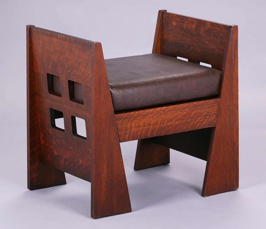 Limbert cutout window seat. Signed with branded mark. Excellent original finish. The cleanest original finish example of this form we have ever seen. 24"h x 24"w x 18"d SOLD
