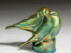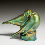 Zsolnay - Hungary Iridescent Green Love Birds c1910