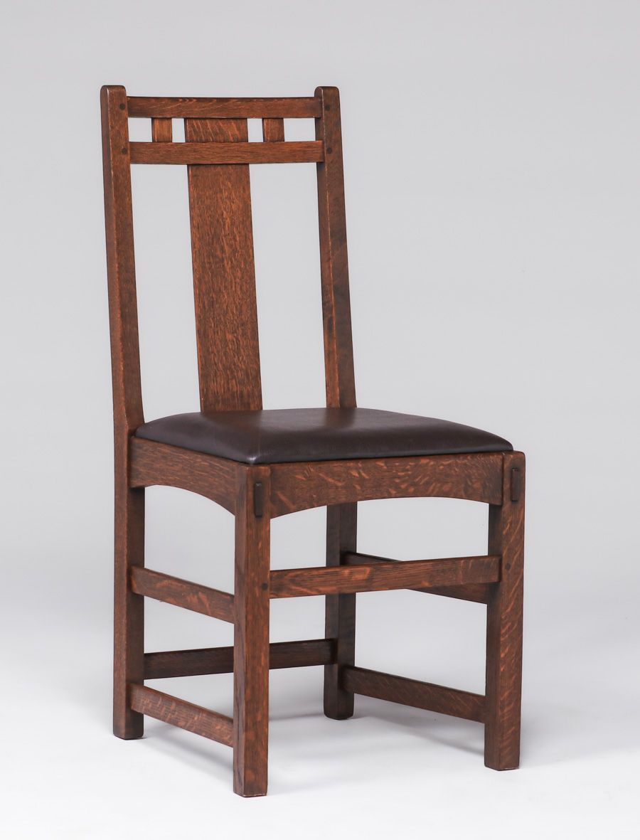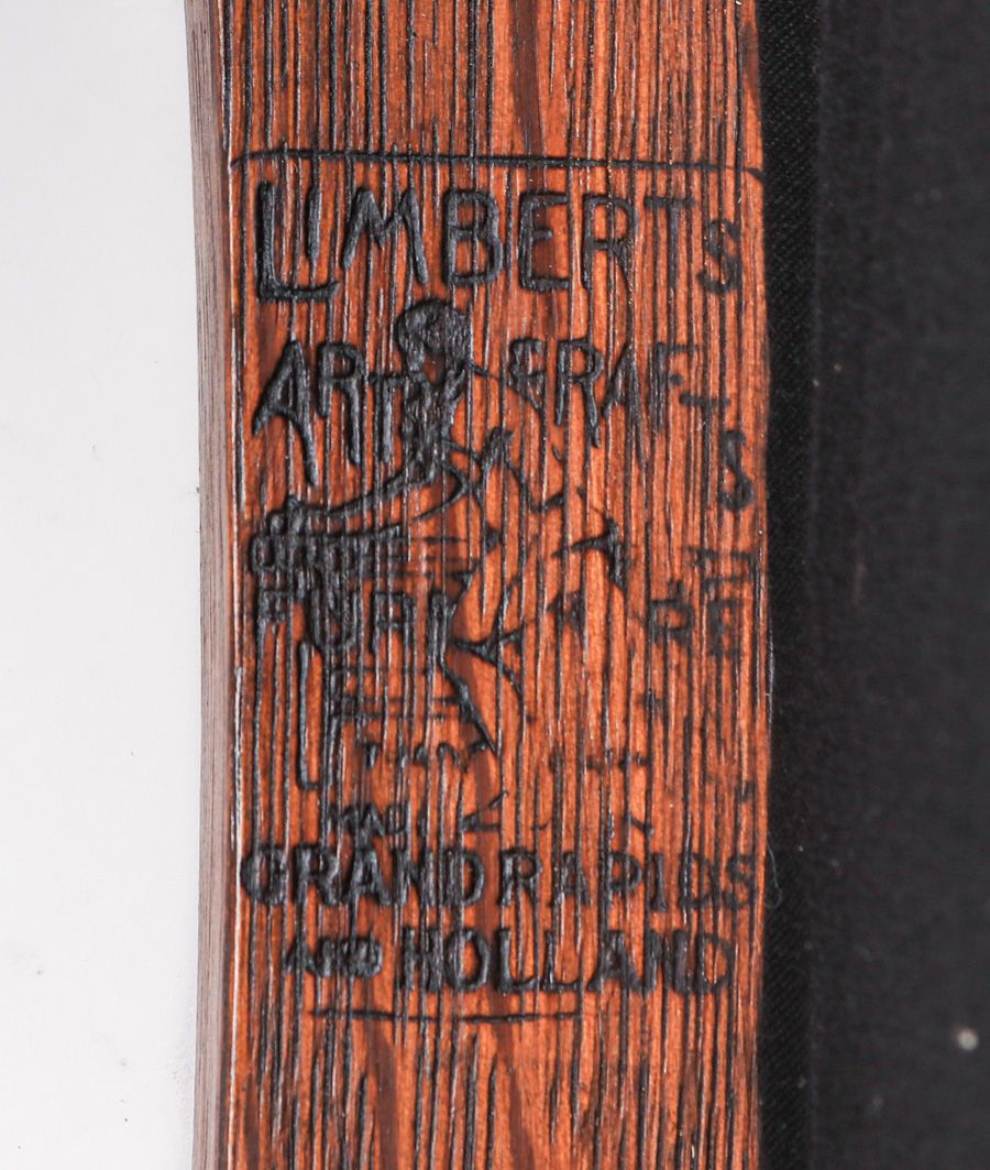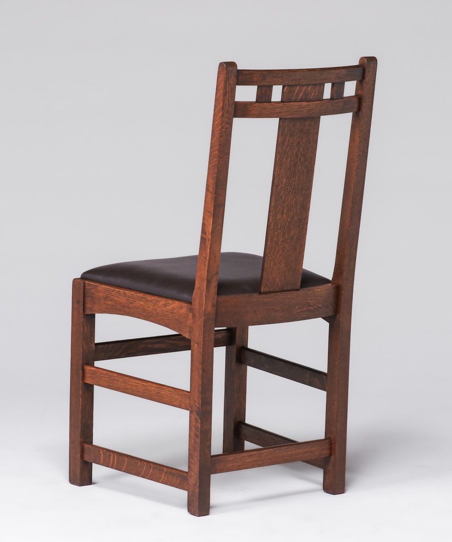 Limbert Set of 6 Dining Chairs c1910. Signed with branded mark. Very nicely refinished. Rock solid sturdy. Armchair 37"h x 24.5"w x 20"d. Side chairs 37"h x 17"d x 18"w SOLD