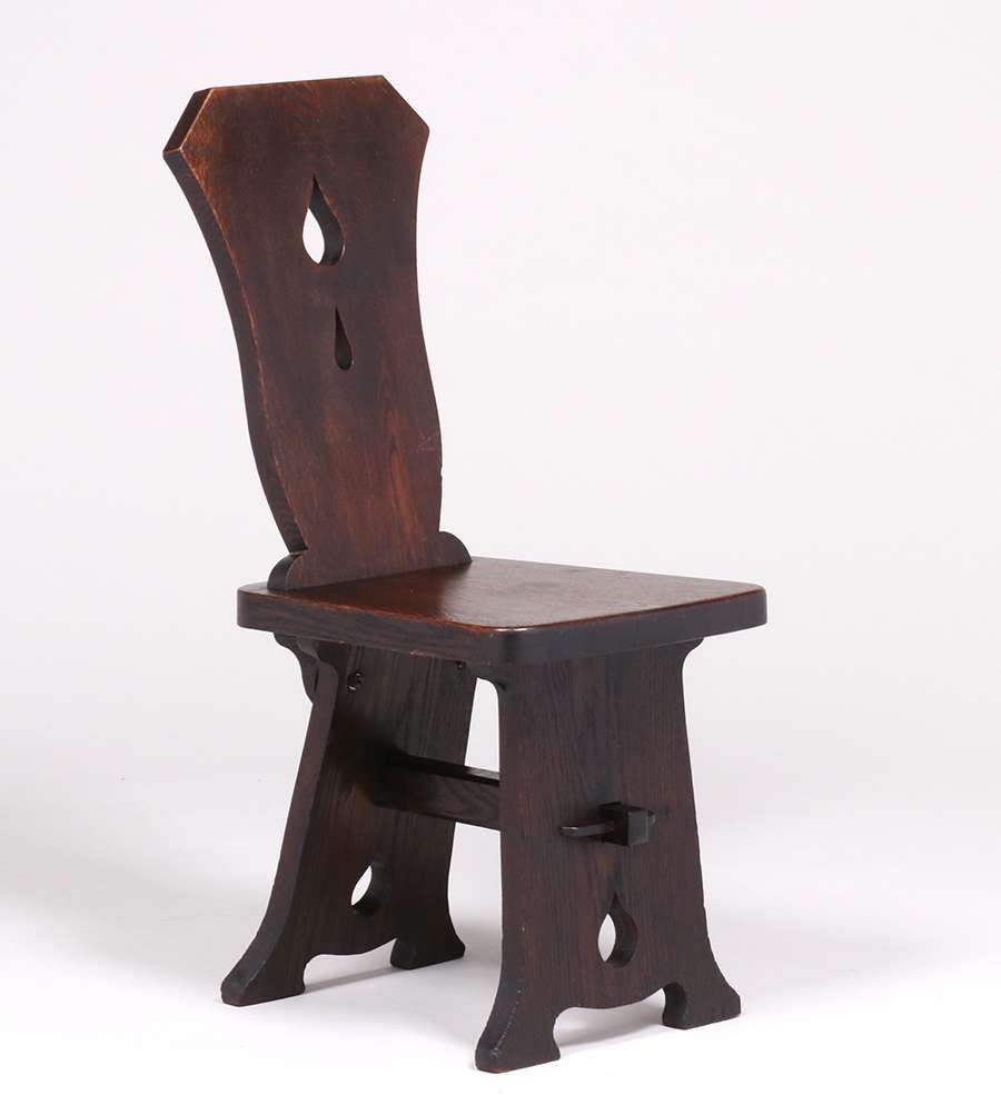 Pair Early Limbert Cutout Hall Chairs c1902. Unsigned. Excellent original finish. These are thicker and heavier than the later similar model #80. 38"h x 16"w x 18"d SOLD