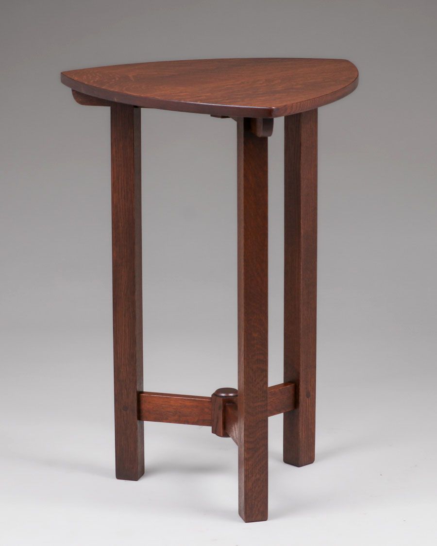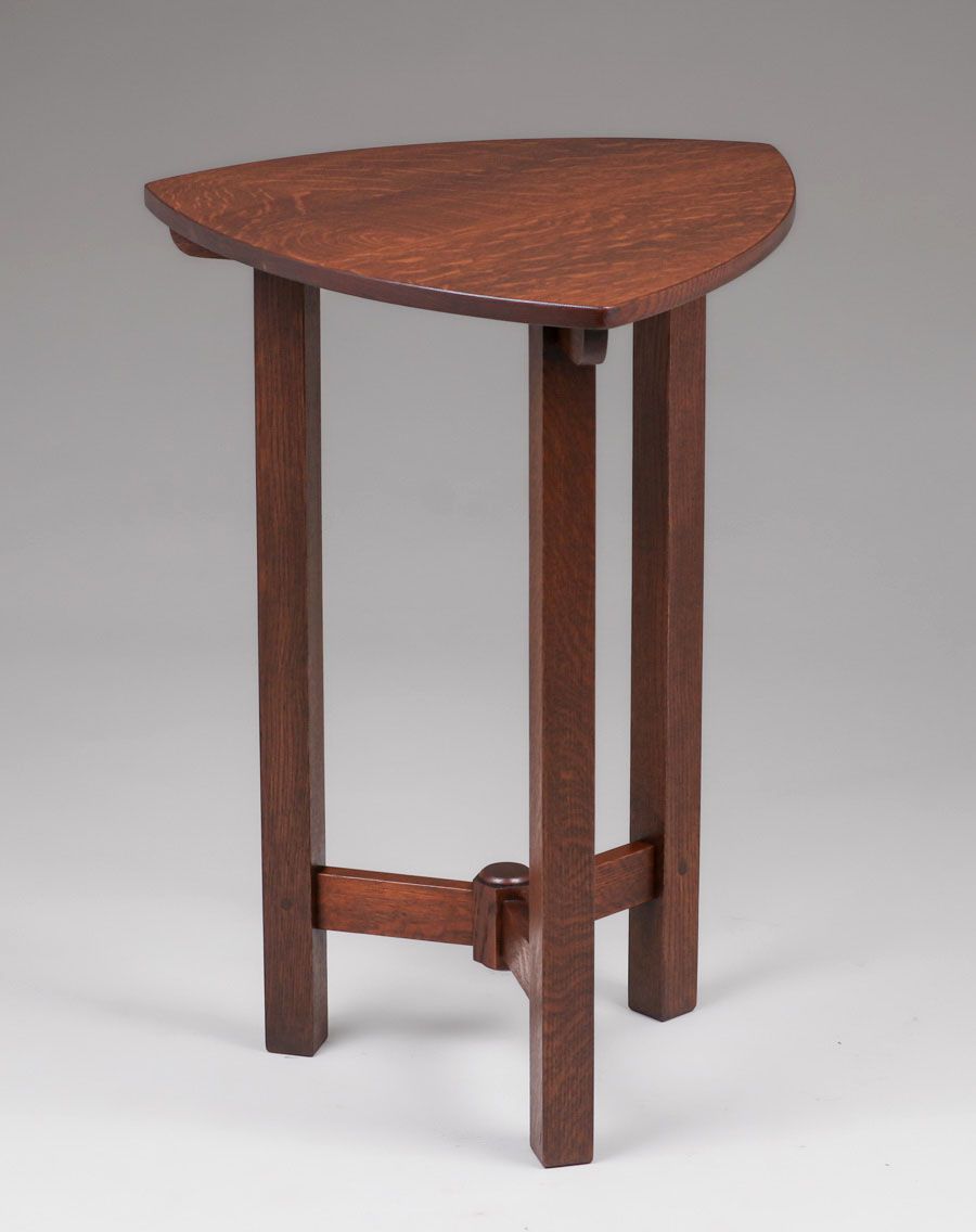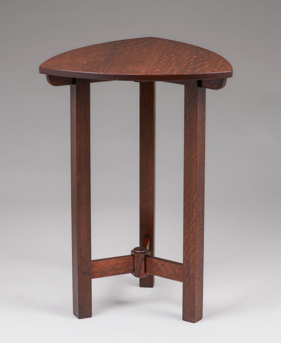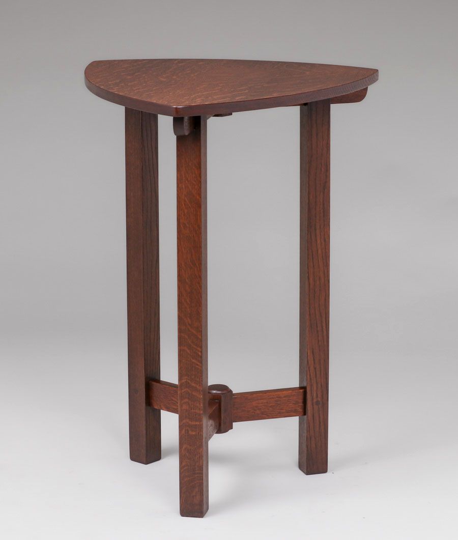 Rare Limbert Guitar-Pick Shaped Side Table c1910. Signed with branded mark. Three perfectly replaced legs. Very nicely refinished. 29"h x 21" x 21" SOLD