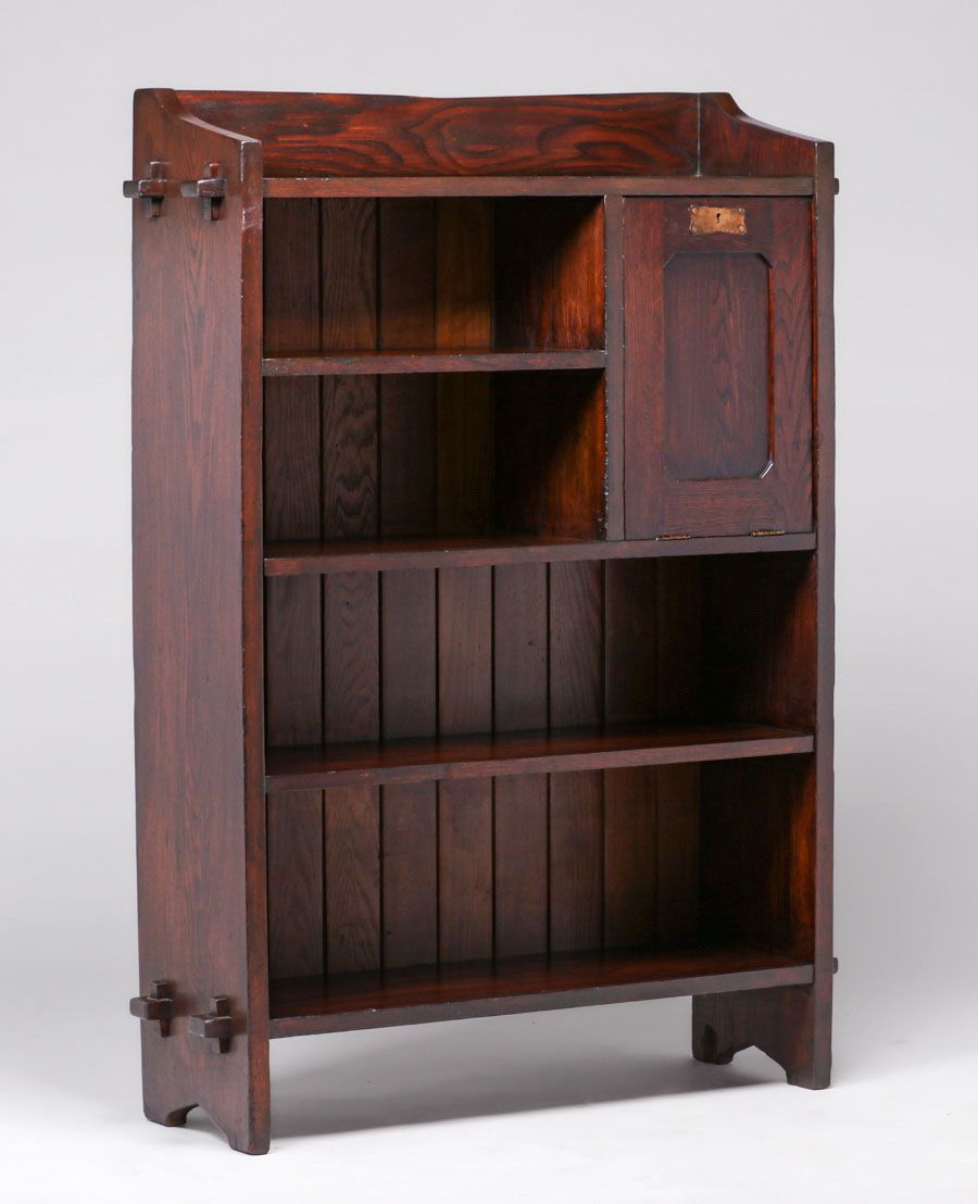 Early L&JG Stickley Onondaga Chestnut Dropfront Desk - Open Bookcase Cabinet c1902-1904. Unsigned. Color added to original finish. 54”h x 36”w + tenons x 12”d SOLD