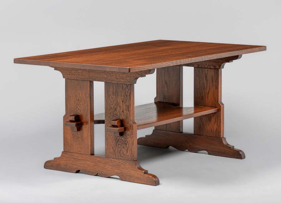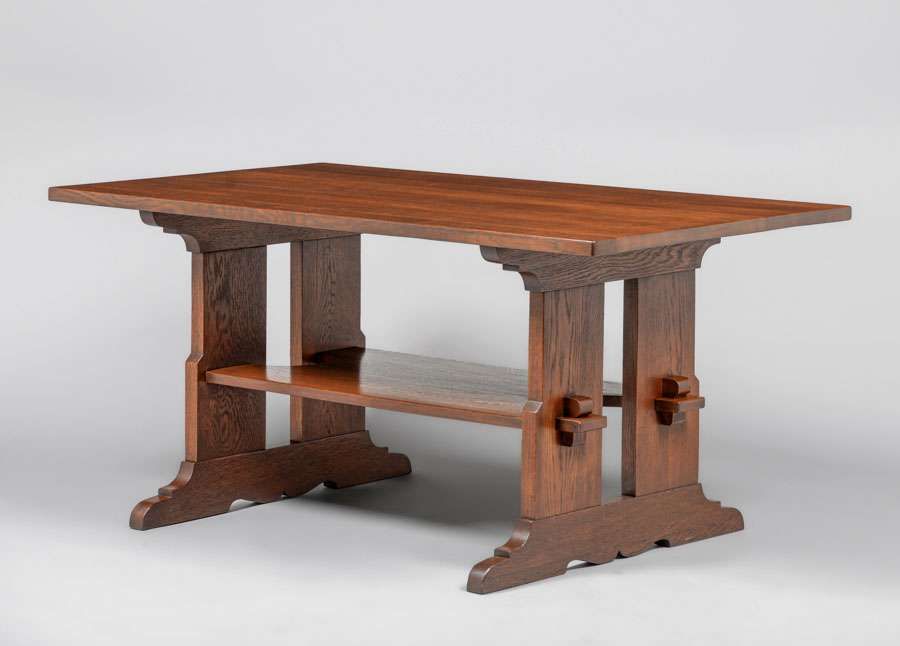 - Large L&JG Stickley 60"w Trestle Table c1910