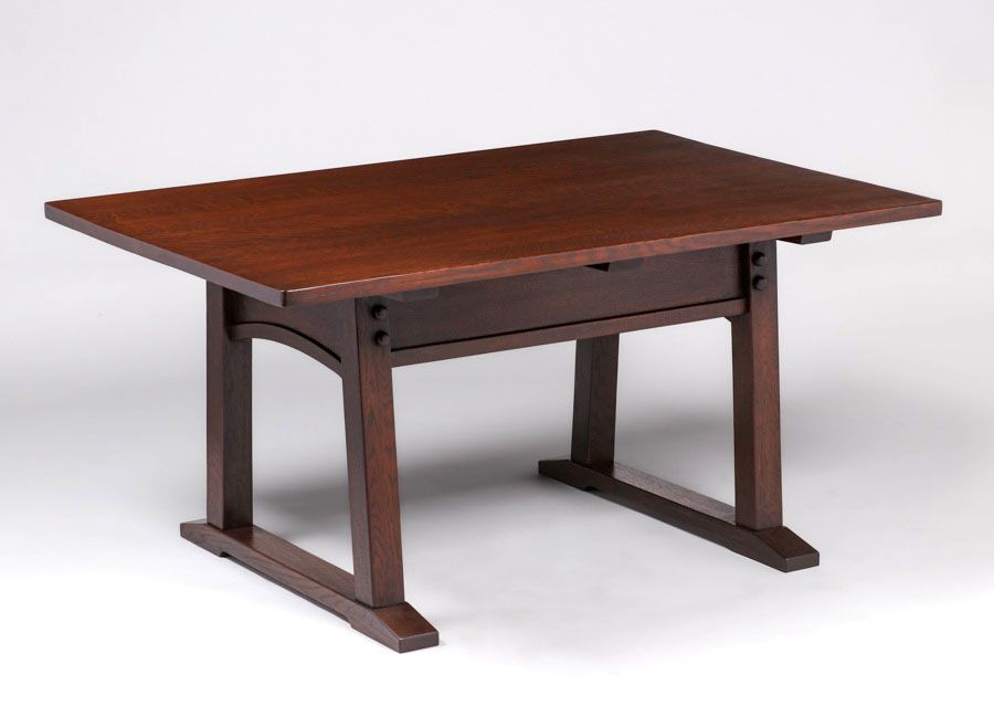 L&JG Stickley #548 Director's Table c1910. Unsigned. Shoe-feet perfectly reconstructed. Very nicely refinished. This form hasn't surfaced in the last 30+ years. 60"w x 40.5"d x 29.5"h SOLD