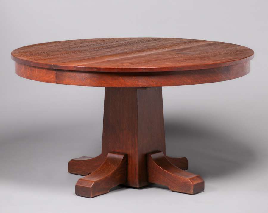 - L&JG Stickley 54"d Dining Table & 6 Chairs c1910